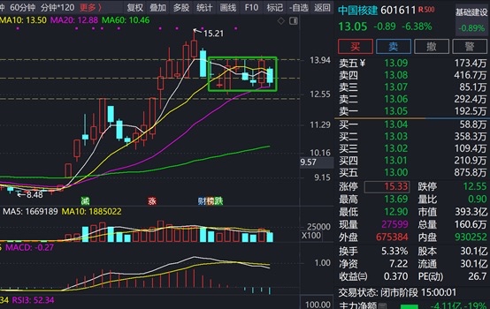 月线处于上升趋势中,但由于上个月涨幅大,导致乖离率较大。存在回调需求。日线看,近期走横盘震荡节奏,今日收于13.05,距离ma20的12.88较近,明后天看能否在此处获得支撑。如果继续横向震荡就减少操作继续等待,下方支持位置看12.42,有效跌破应降低仓位。上方压力位暂看14.5附近。