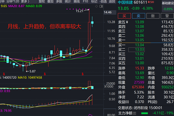 月线处于上升趋势中,但由于上个月涨幅大,导致乖离率较大。存在回调需求。日线看,近