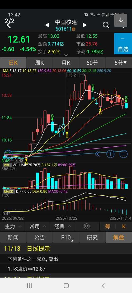 对于中国核建,主力就是在诱多,注意主要还是把盈利出来的人骗回去!因为这个走势技术