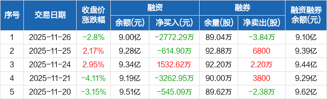 中国核建:融资净偿还2772.29万元,融资余额9亿元(11-26)