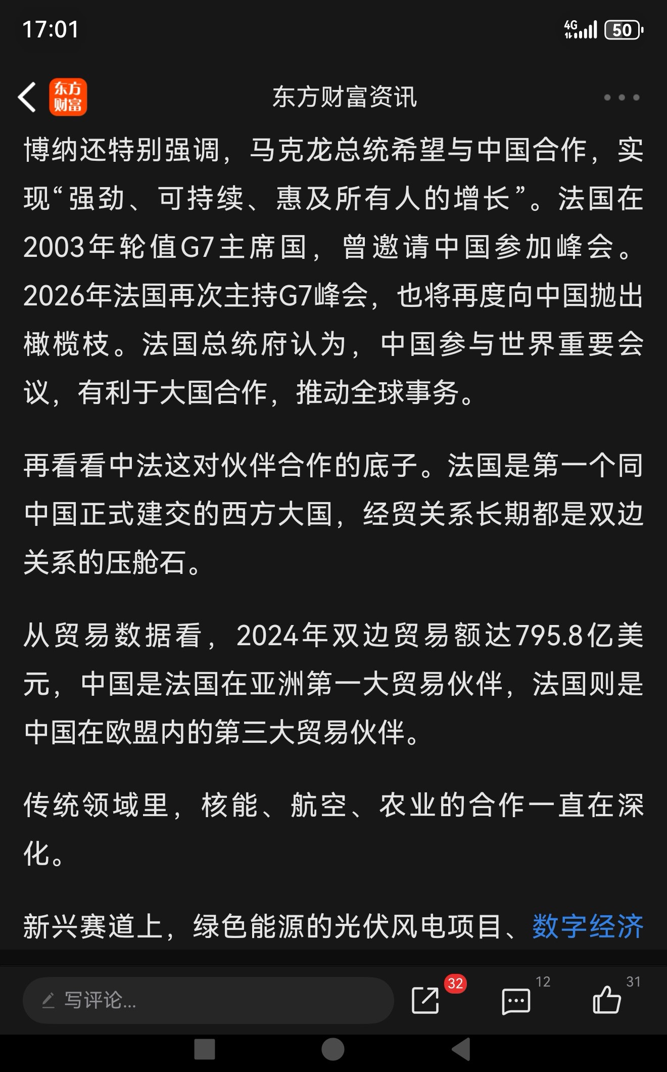 $中国核建(SH601611)$ 法国总统马克龙将于12月3日至5日访华,双方洽谈核能合作。