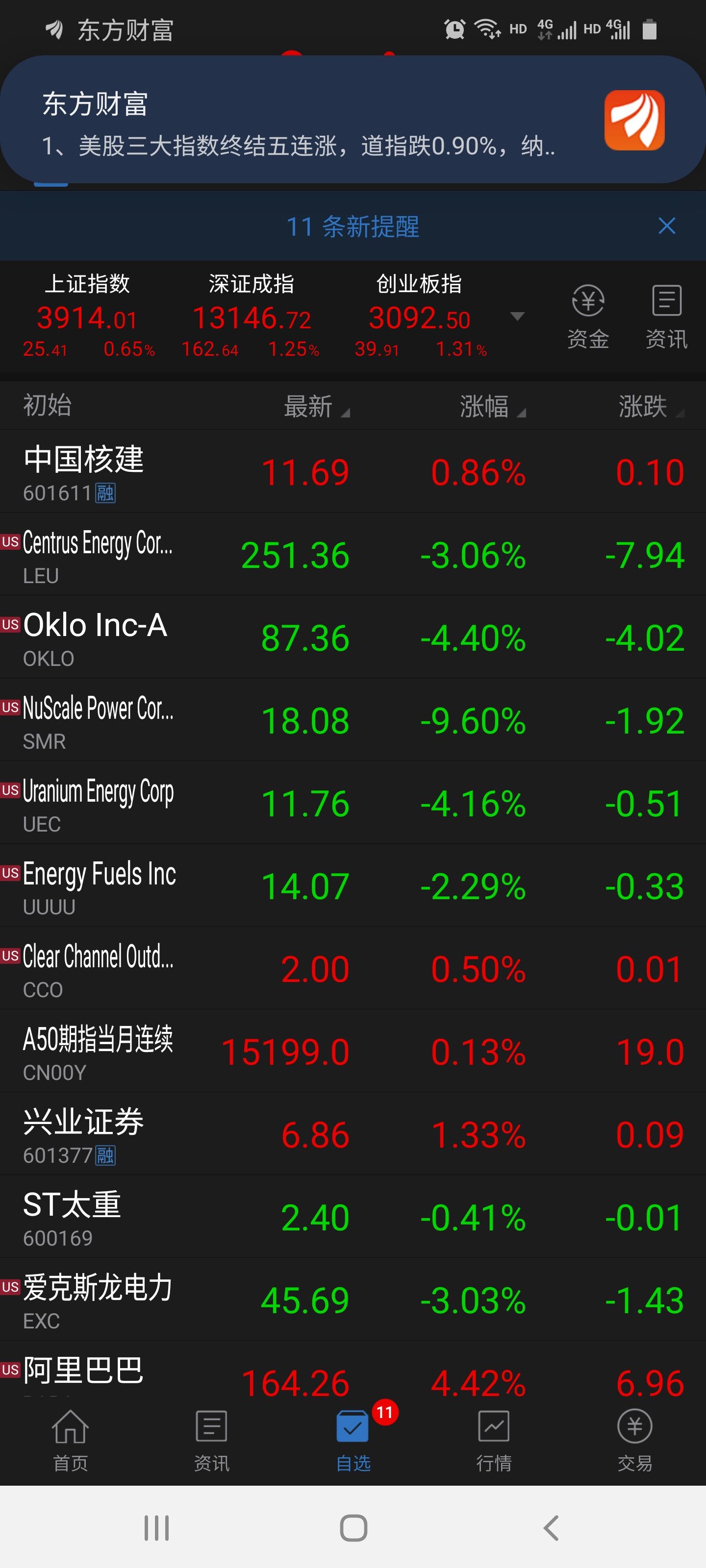 美国也跌了,美国核电股票也大跌,再加上中国核建昨天折价10.78%大宗交易,今天
