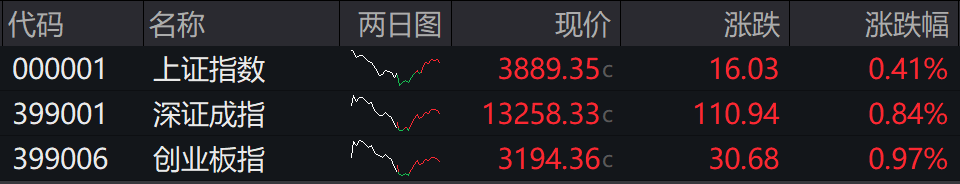 12月12日,A股三大指数震荡上涨,截至收盘,沪指涨0.41%,深成指涨0.84%,创业板指涨0.97%。