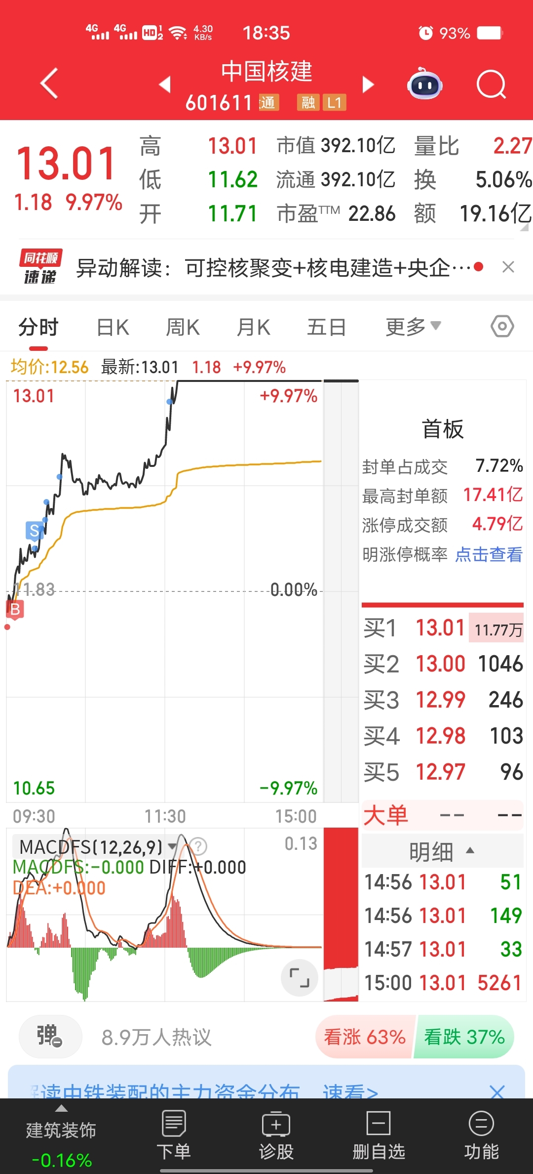 $中国核建(SH601611)$ 怂的,没敢多买