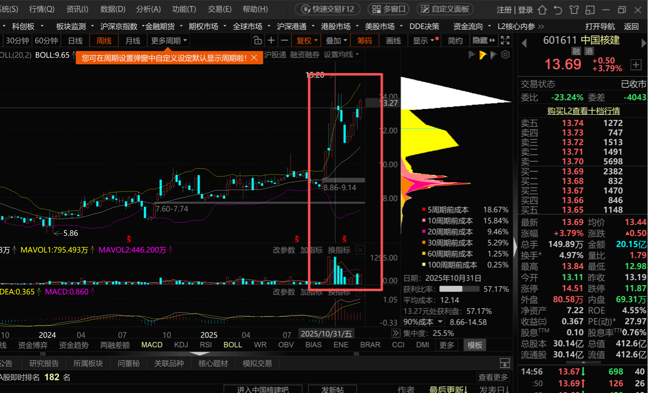 $中国核建(SH601611)$ 下周打算把拿了五年的北方华创卖掉些 再加仓这个股票 下周只要有量就加仓