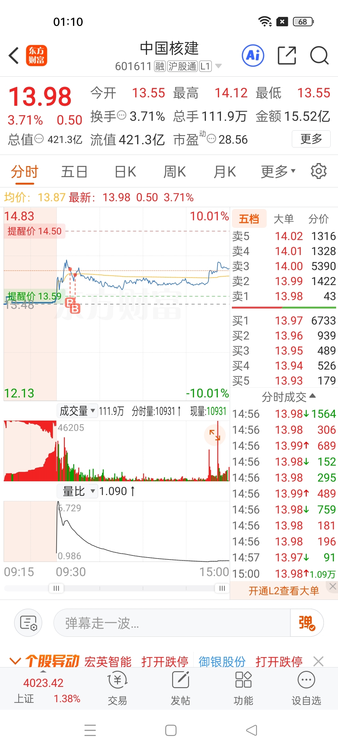 $中国核建(SH601611)$ 像这种就是买快了,与支撑点差2个点
