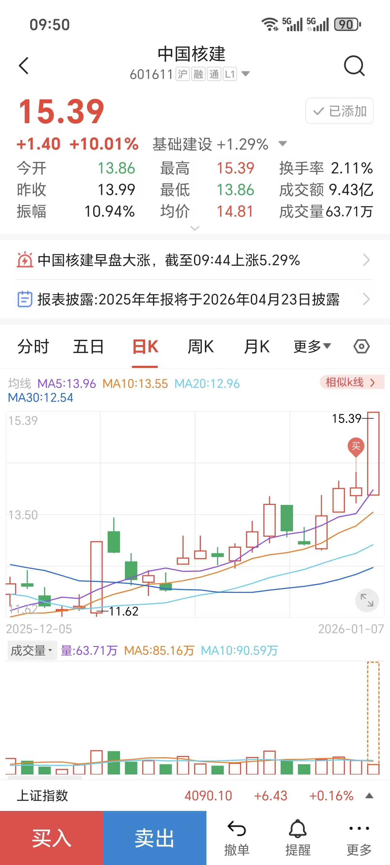 昨天果断13.7毛多买入,爽歪歪。