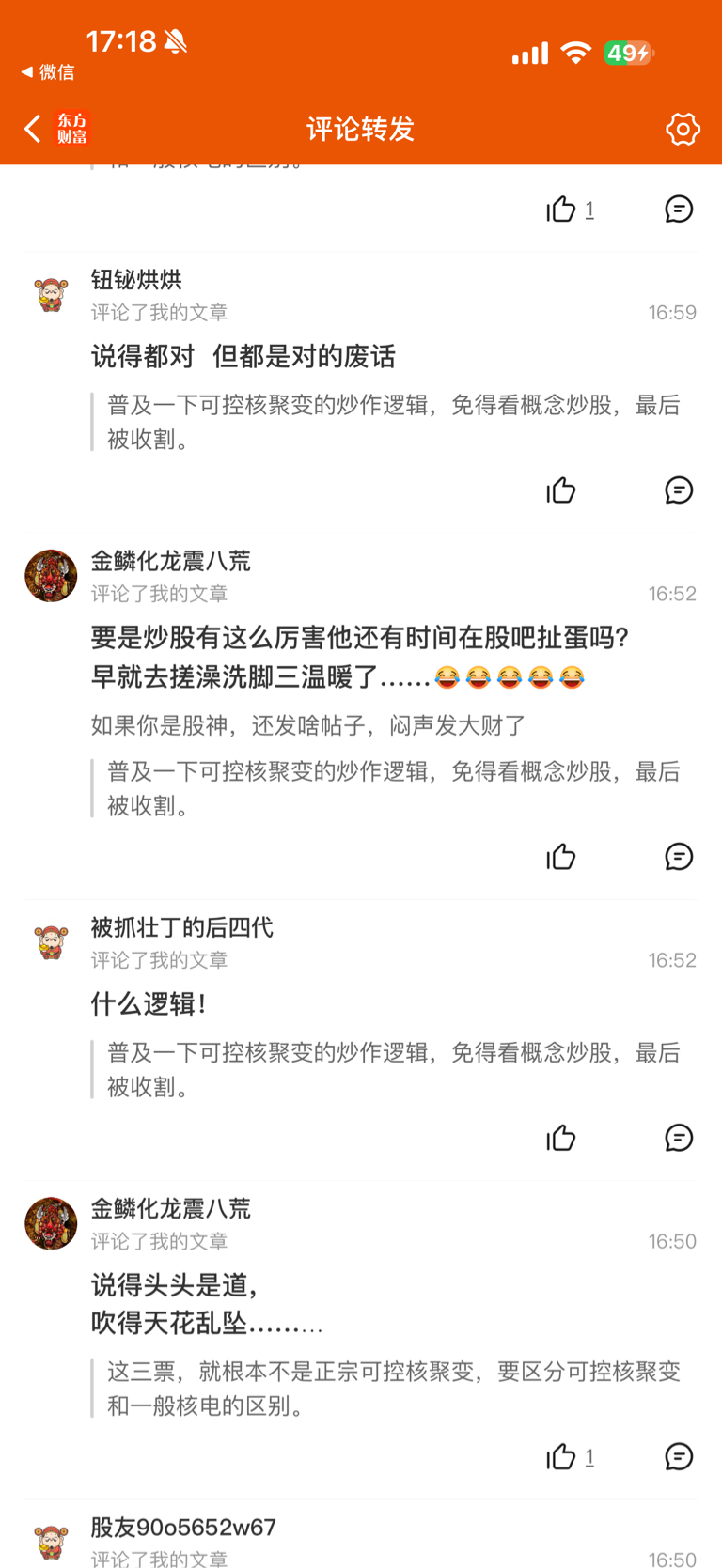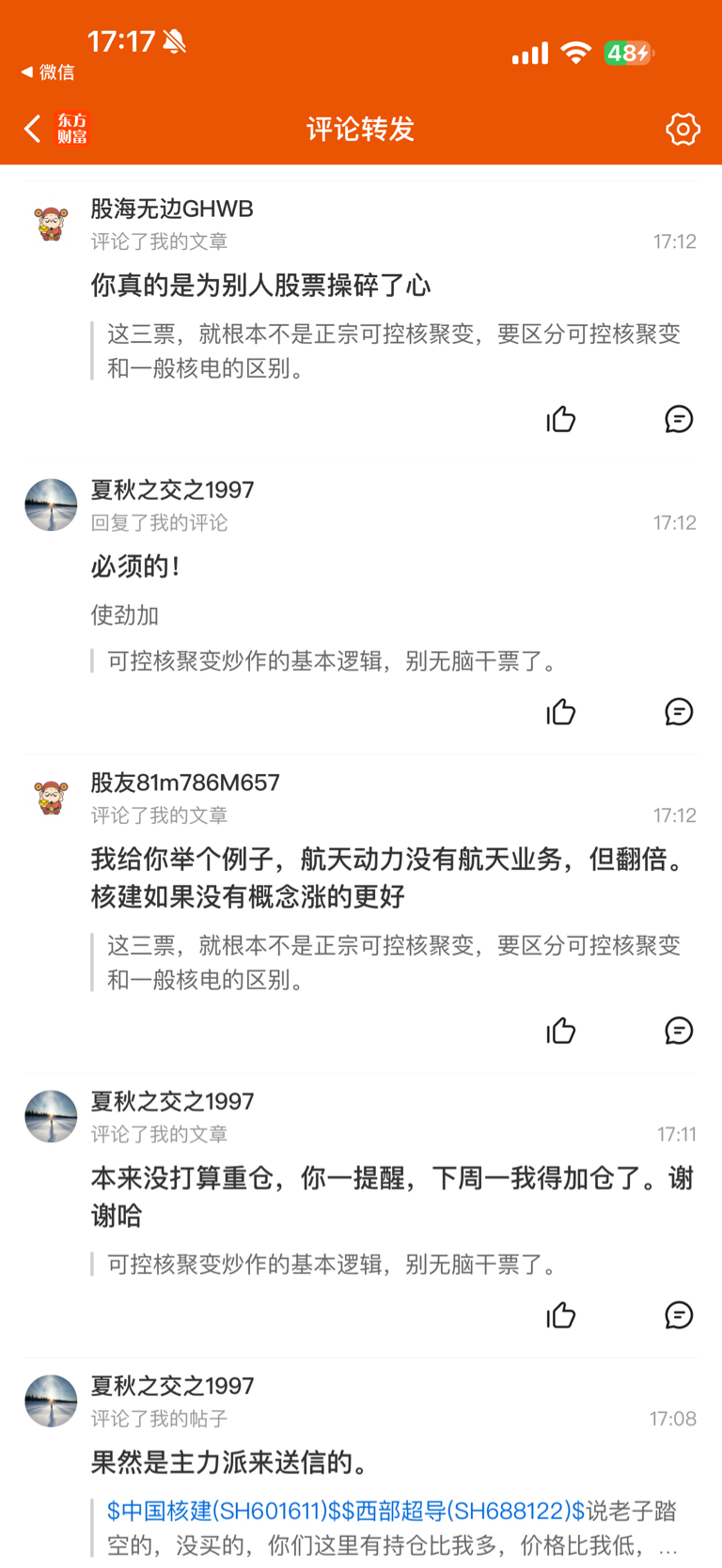 $中国核建(SH601611)$ 看看这些评论的,都是啥心态,还没买的,你买了就是给这些人接盘。我看好核聚变,但是希望你们买到真正的收益票并且可以拿到2050年真正的商业化,那时候搞个几十倍都有可能。$中核科技(SZ000777)$ $国机重装(SH601399)$