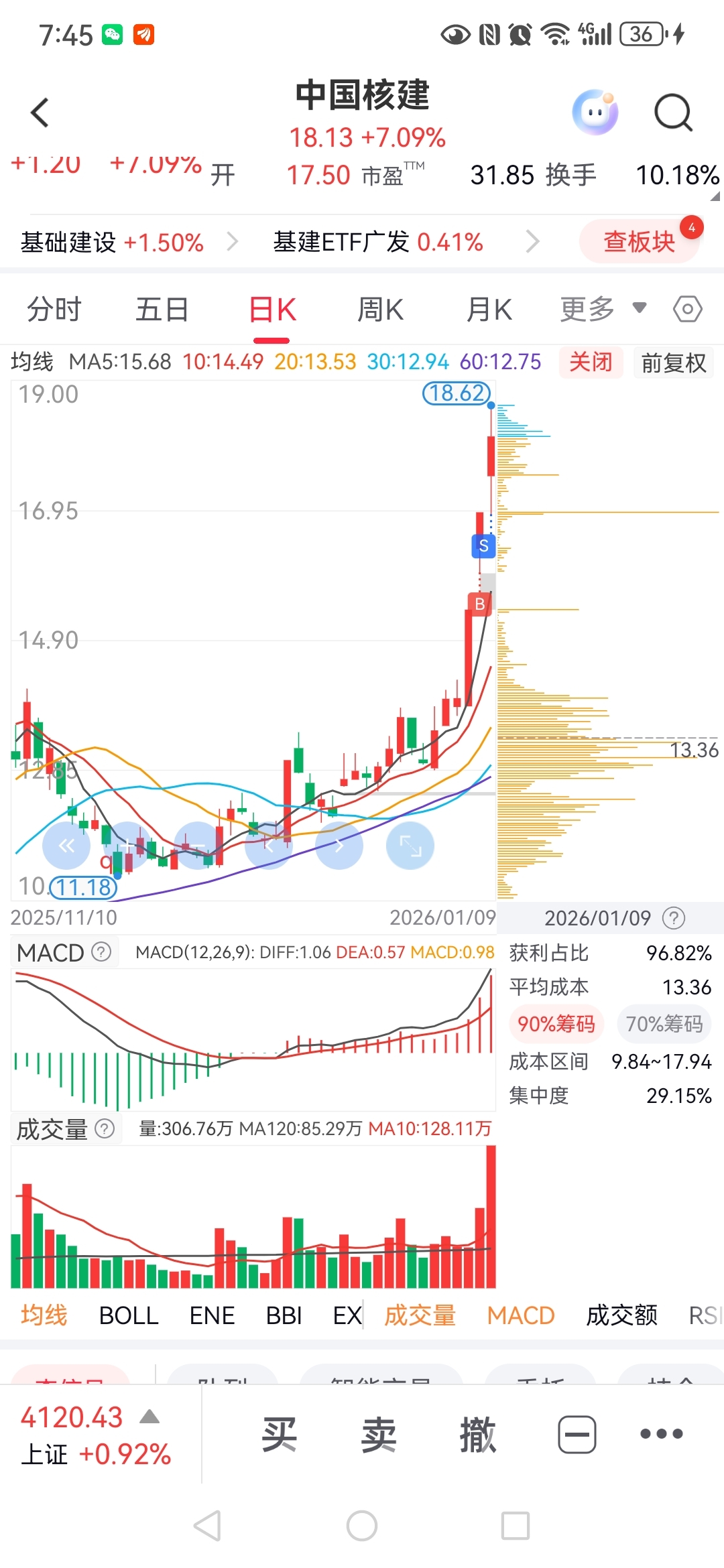$中国核建(SH601611)$ 周五清了核建,真手贱