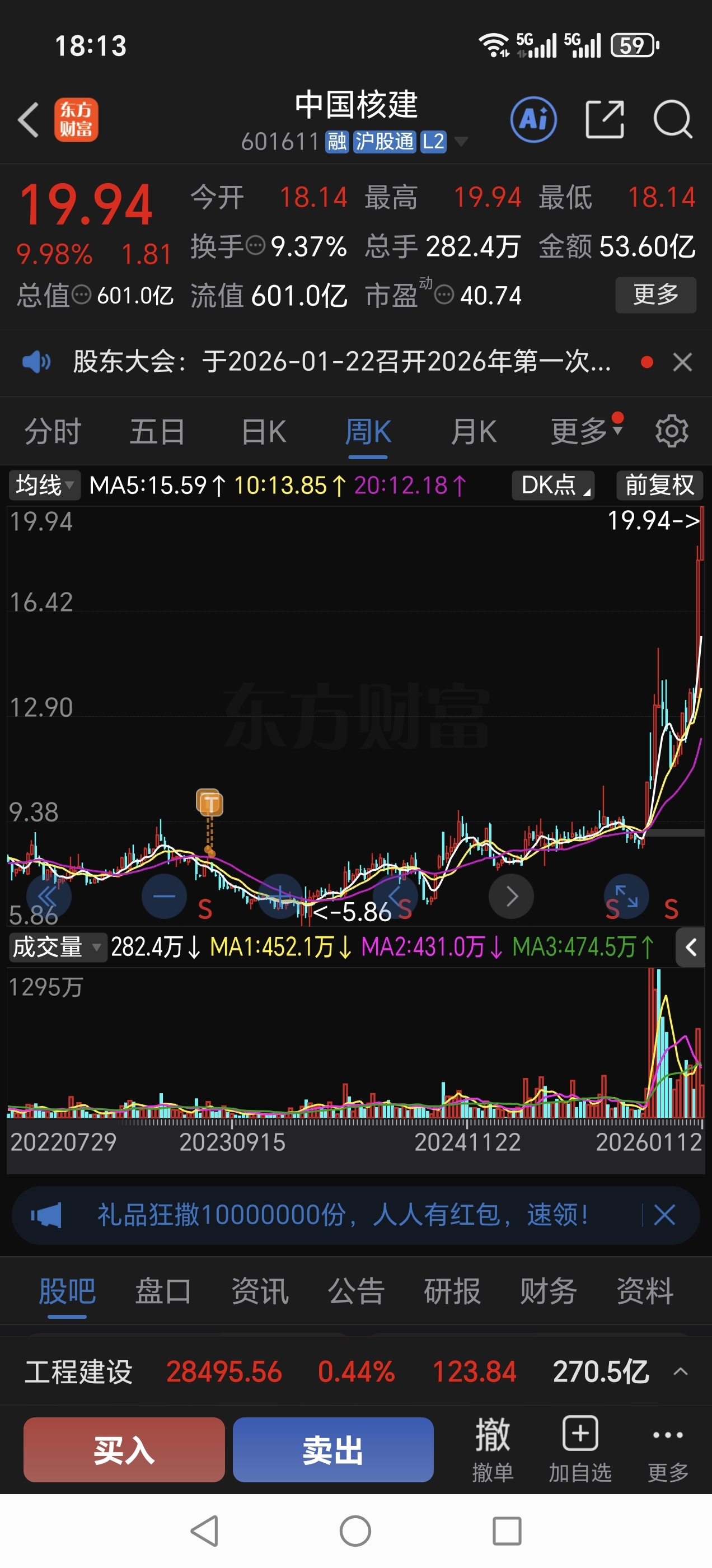 $中国核建(SH601611)$ 我买的时候天天跌!