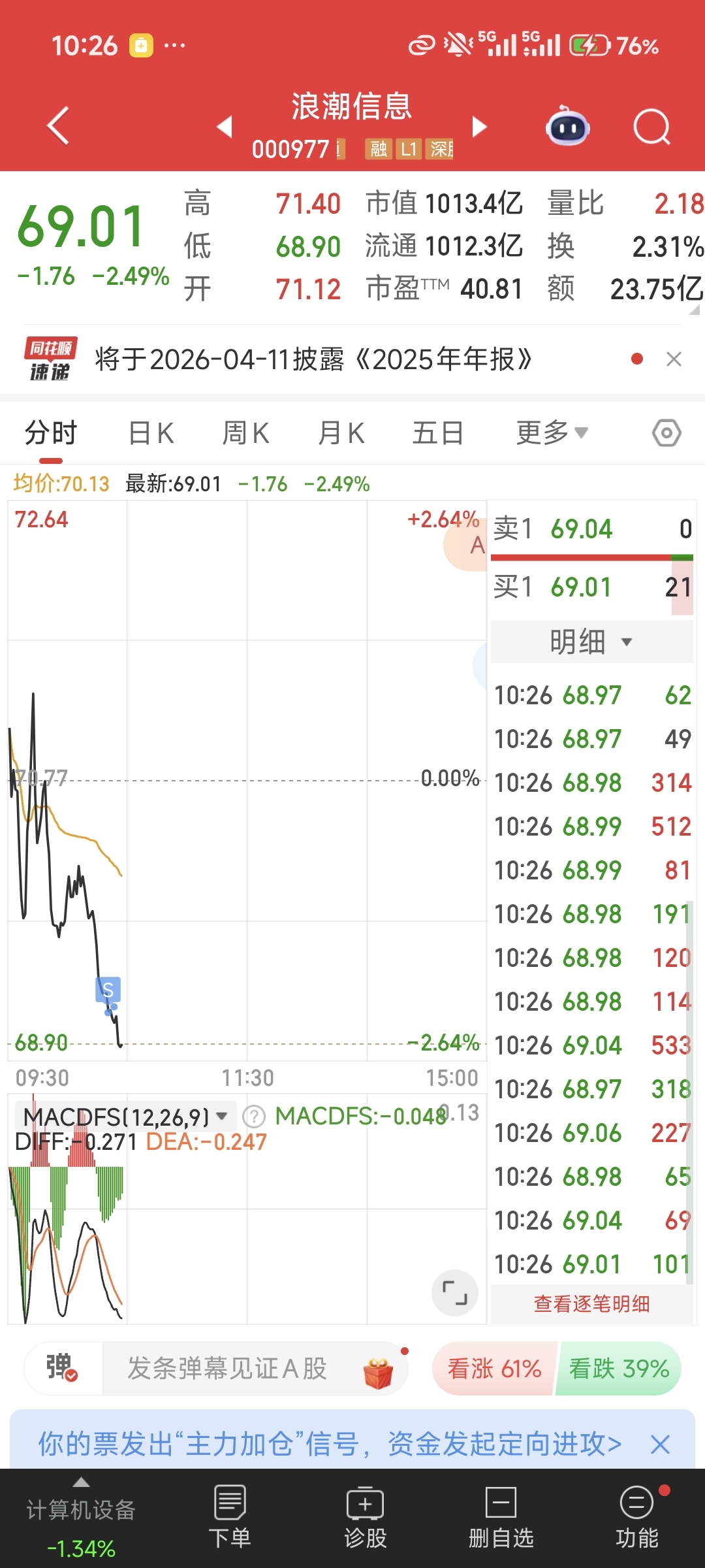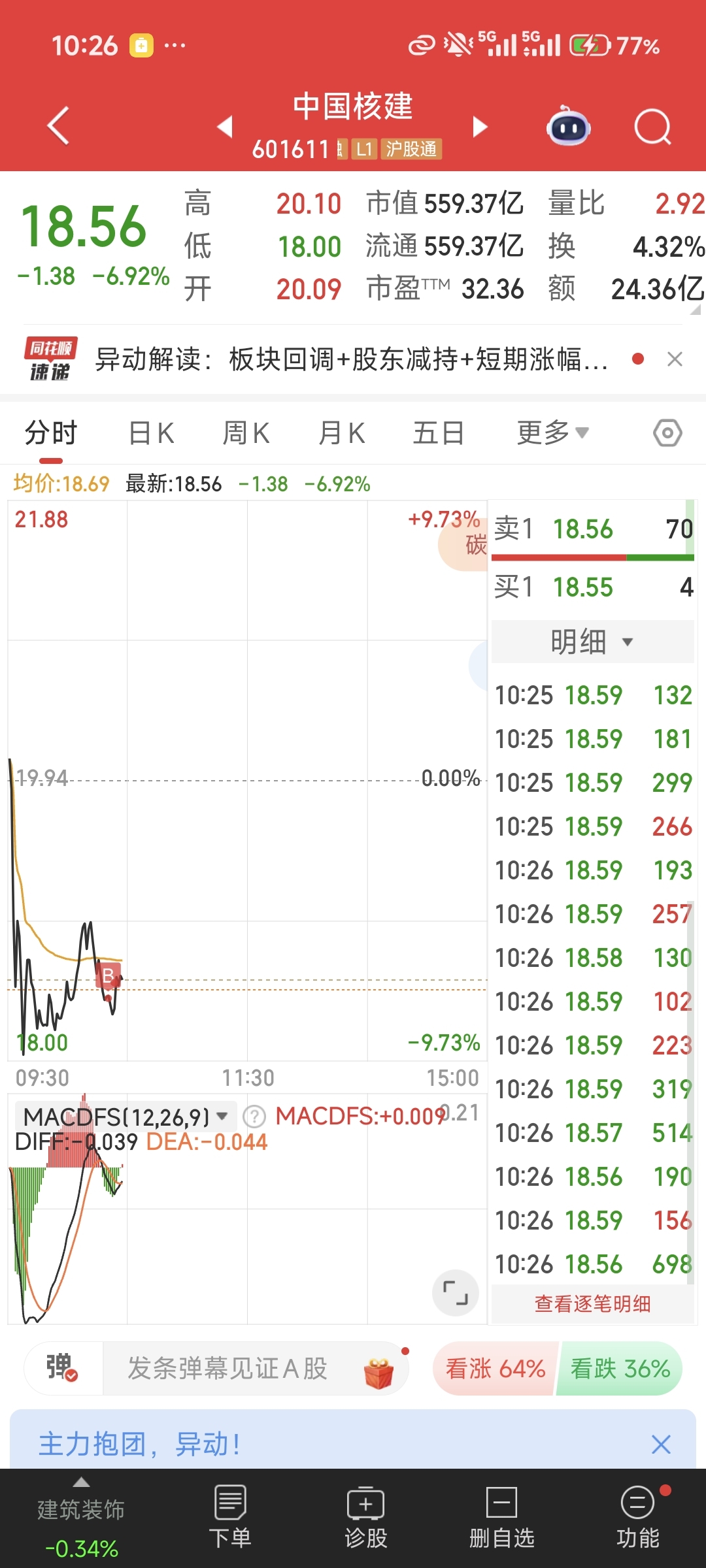 减仓浪潮信息,买入中国核建,继续持有创新医疗。看好脑机和核聚变代替商业航天走趋势