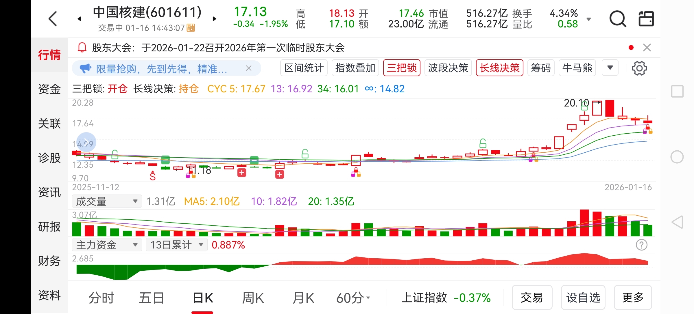 $中国核建(SH601611)$ 提示买入,是买点吧,要不要全仓猛干!