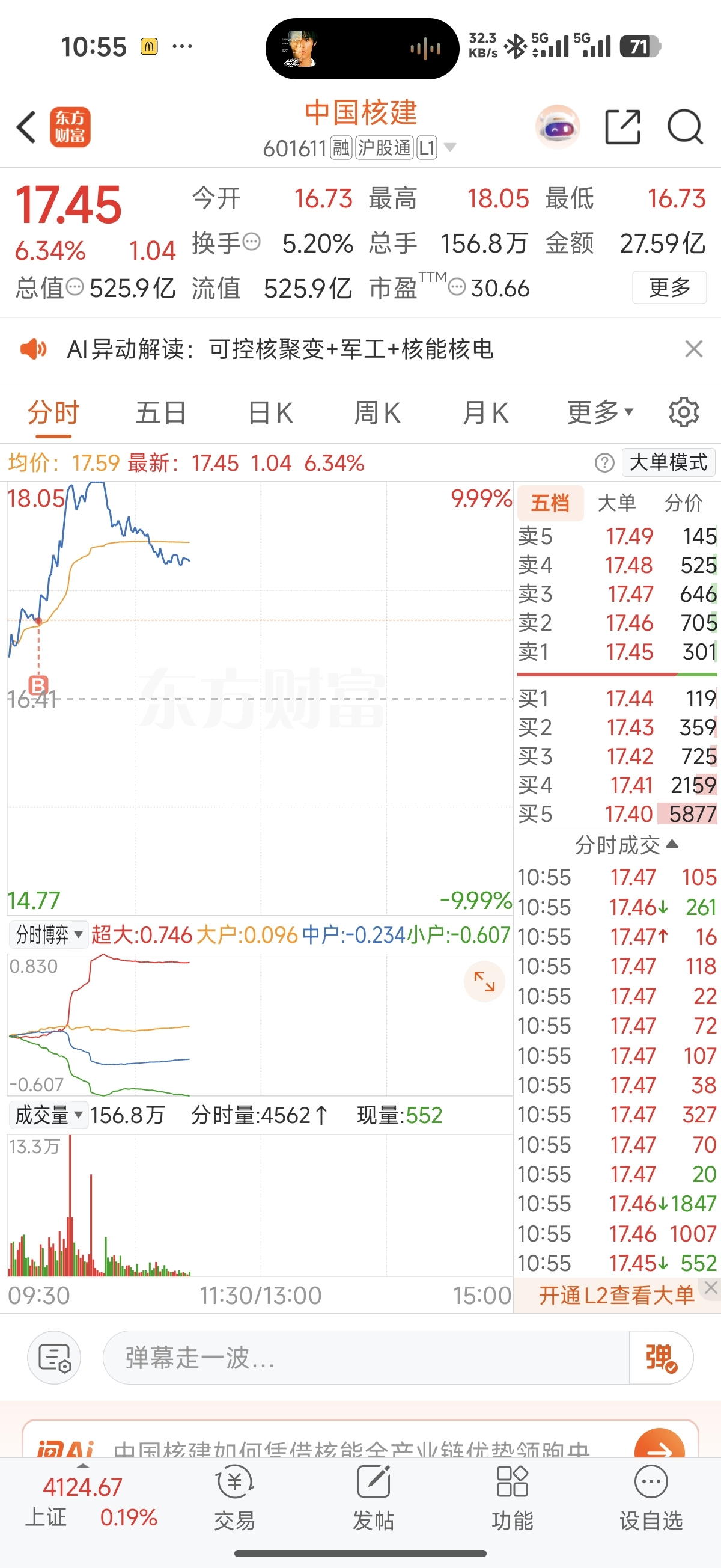 $中国核建(SH601611)$ 买点还可以可惜炸板了