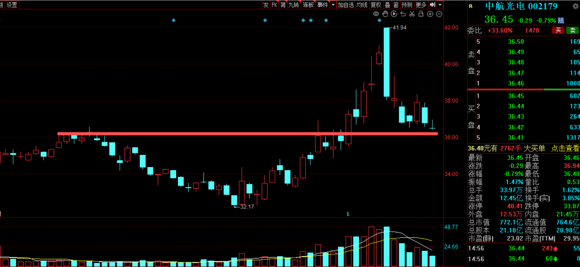 商业航天进入到反复出利好股价也不反应了,昨天中国卫星卫通都是冲高回落,航天电子大幅反包都回落下来。现在就是高位股派发筹码阶段了。中航原有预期也没有出现,主力资金眼瞎了一样,要业绩有业绩,要题材是蓝箭航天核心供应商,要维持根本就没长,天时地利人和都占全了就是不动。看来短期走独立商业航天行情也难以实现,换手率只有1.6%,明显就是散户在自嗨了,底线在36破位就撤了。
