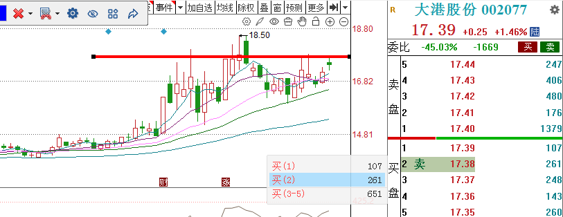 这标的风向也是芯片概念,跟万业企业形态上最大的区别是大港股份是处于箱体震荡结构,而后者是突破近期新高后寻求回收蓄势的表现,大港的相对低位则在板块有好消息时候出现稳健的补涨模式。公司主营集成电路和园区环保服务,但公司核心业务是集成电路,占总营收一半以上。公司拥有完整的中高端IC测试服务业务体系。其中全资子公司上海旻艾定位于中高端IC测试,主打12英寸、8英寸的CP服务以及QFP、BGA、DIP、SOP、QFN等封装芯片测试,产品类型包括存储芯片等多个类型。日前汽车行业稳增长工作方案(2025~2026 年)下发,对今年和明年汽车产业发展目标做出了明确指引,控股孙公司苏州科阳目前已通过ISO/TS 16949 汽车行业认证体系,正积极拓展在汽车电子行业的布局。技术的层面看,K线走重叠,都是来回震荡来回反包的结构,今天再度去试探9月25日跟26日的双针压力,可惜没有直接突破,同样留下上影线,看来还需进步一步去巩固目前的三浪底部结构,一旦突破这三根射击线的压制就有望走出真正的第三浪主升浪行情。