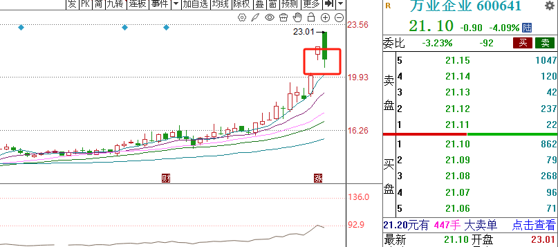 今天高开低走,走得有点狼狈,原本看好的逻辑是芯片半导体方向,今天这两个板块也掀起涨停潮了,但万业企业走成这样则多半是被房地产板块给拖累了。公司最先的确是做房地产的,公司的主营产品是房地产销售、物业服务和房产租赁,美联储降息也会让国内宽松,这个议题也多次被提及过,今天这个板块却领跌日后也有修复的逻辑,但这票走势这般强主要是跟随半导体起来的,公司从传统房地产产业向半导体产业过度,9月29日也拟改名成上“海先导基电科技股份有限公司”,经营范围同步调整为半导体设备、材料、零部件等,以全面体现转型后的核心业务。公司离子注入机系列产品已通过国内多家晶圆厂验证,零部件国产化验证覆盖率超95%,订单持续释放。今天高开低走明显是有大单逢高流出,那么后市的基会就要等出现反包再动了,按理今天这根是属于断头铡刀阴线,明天如果高开高走或者之后在今天最低价之上做震荡,也还将是再度观察的二次机会,连续探出两根金针也说明多头还试图做反抗。