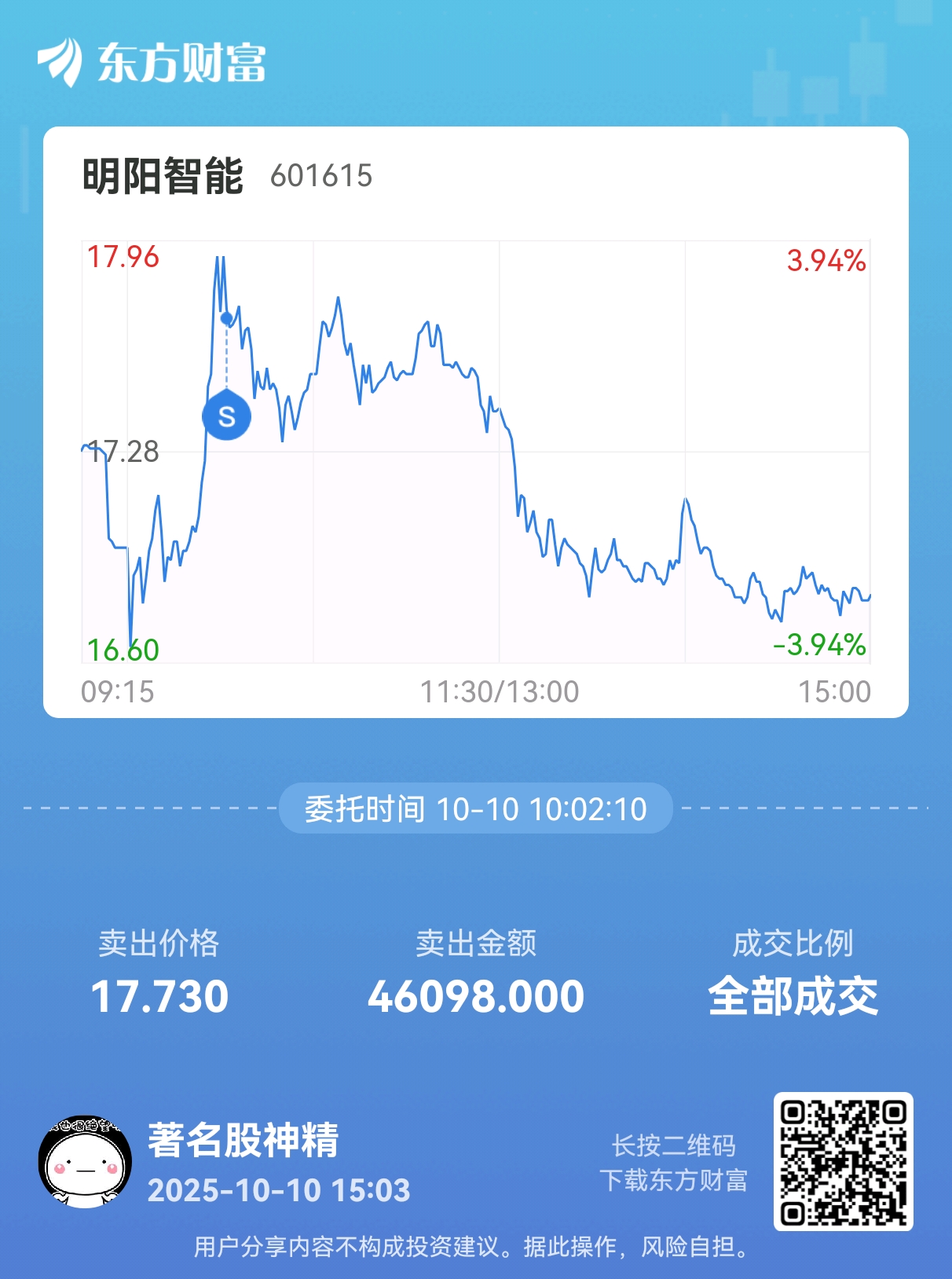 温馨提示: 1.根据《证券法》规定,禁止编造、传播虚假信息或者误导性信息,扰乱证券市场;2.用户在本社区发表的所有资料、言论等仅代表个人观点,与本网站立场无关,不对您构成任何投资建议。用户应基于自己的独立判断,自行决定证券投资并承担相应风险。《东方财富社区管理规定》