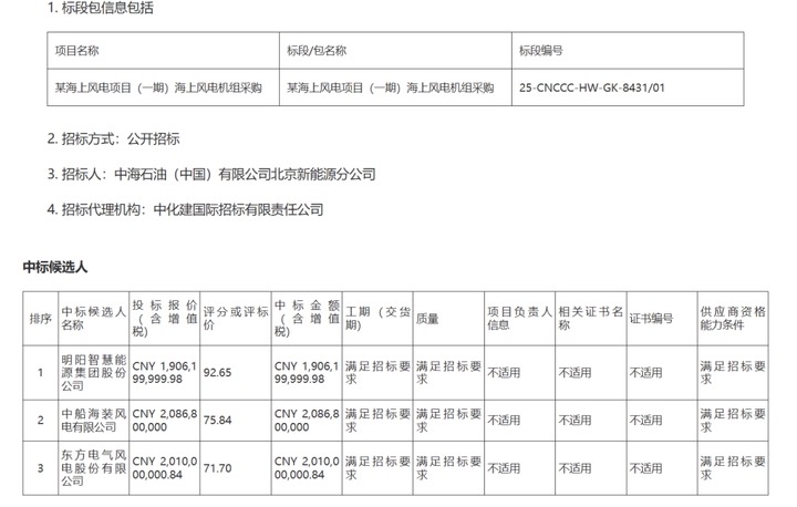 第一预中标明阳智能
