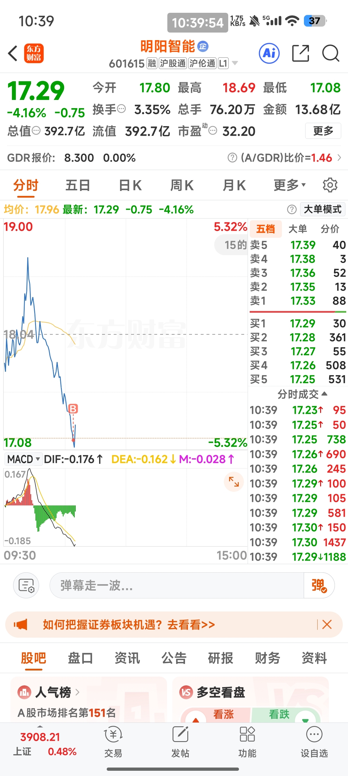 $明阳智能(SH601615)$ 我买了 可以跌了,我一般影响大a的走势