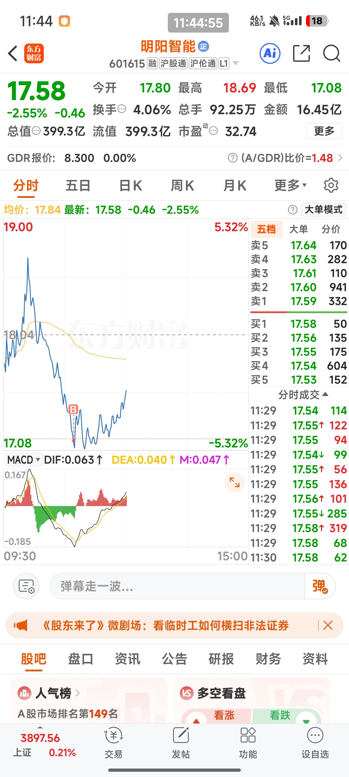$明阳智能(SH601615)$ 正常情况下我的操作影响大a的走势,我进来了,都可以走了,别说不给你们机会走