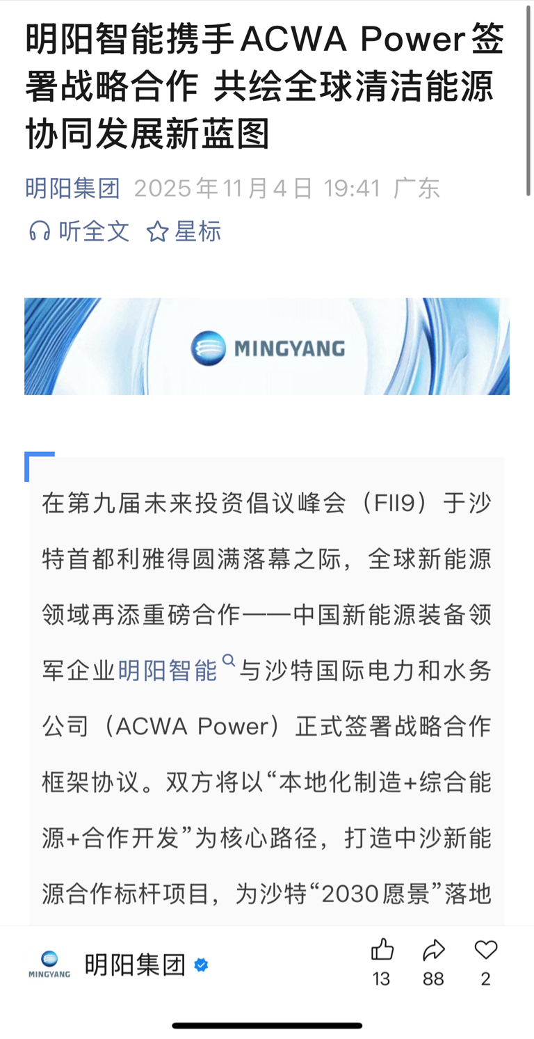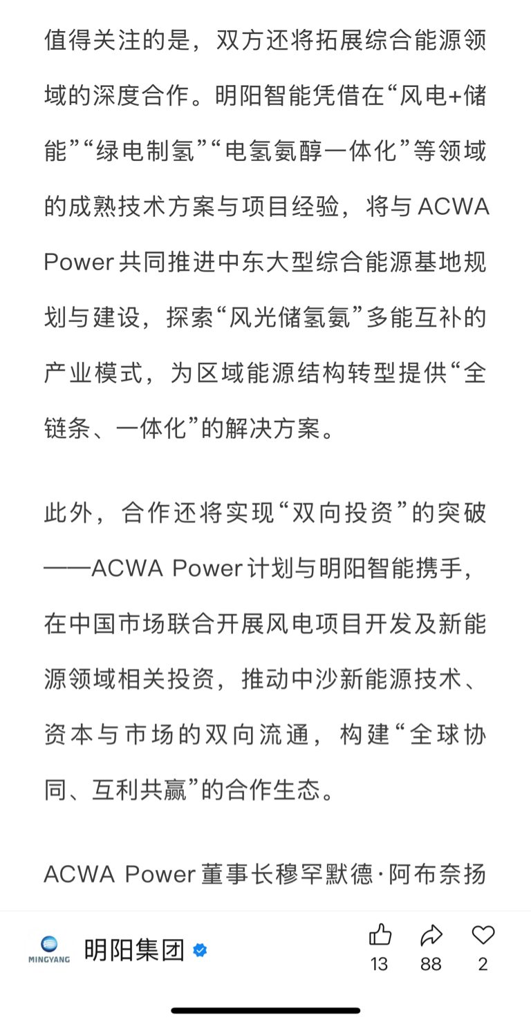 $明阳智能(SH601615)$ 双向奔赴,与沙特公司强强联手。