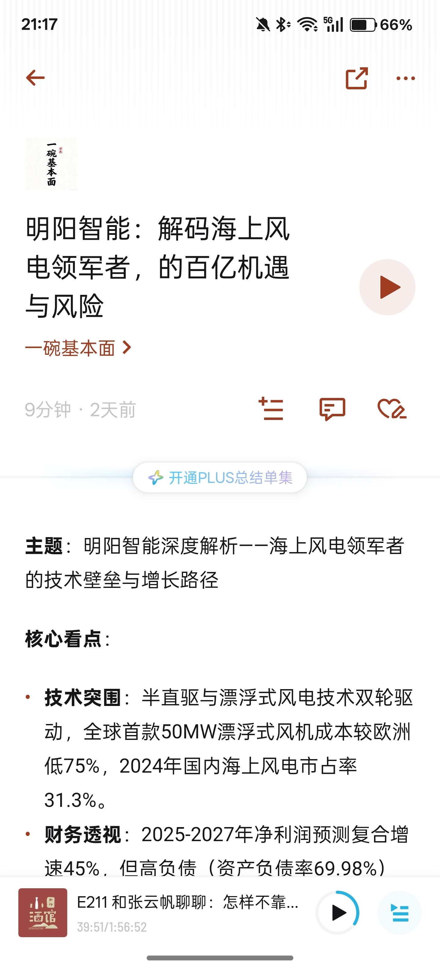 小宇宙app,主理人“一碗基本面”,11.8发的一篇关于“明阳智能”的播客挺好的