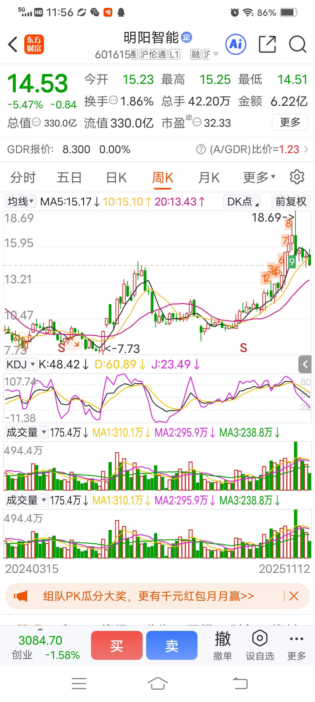 $明阳智能(SH601615)$ 明阳这杂毛又回到了11个月前的高点