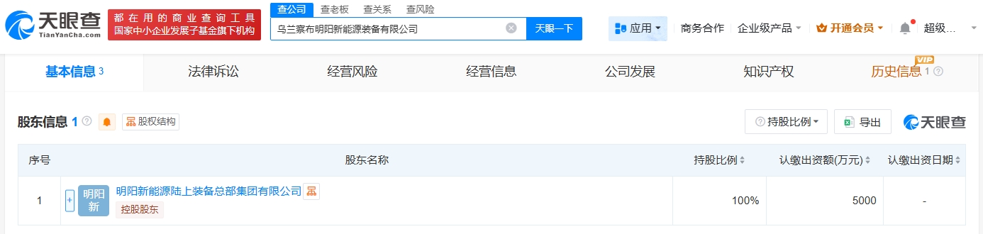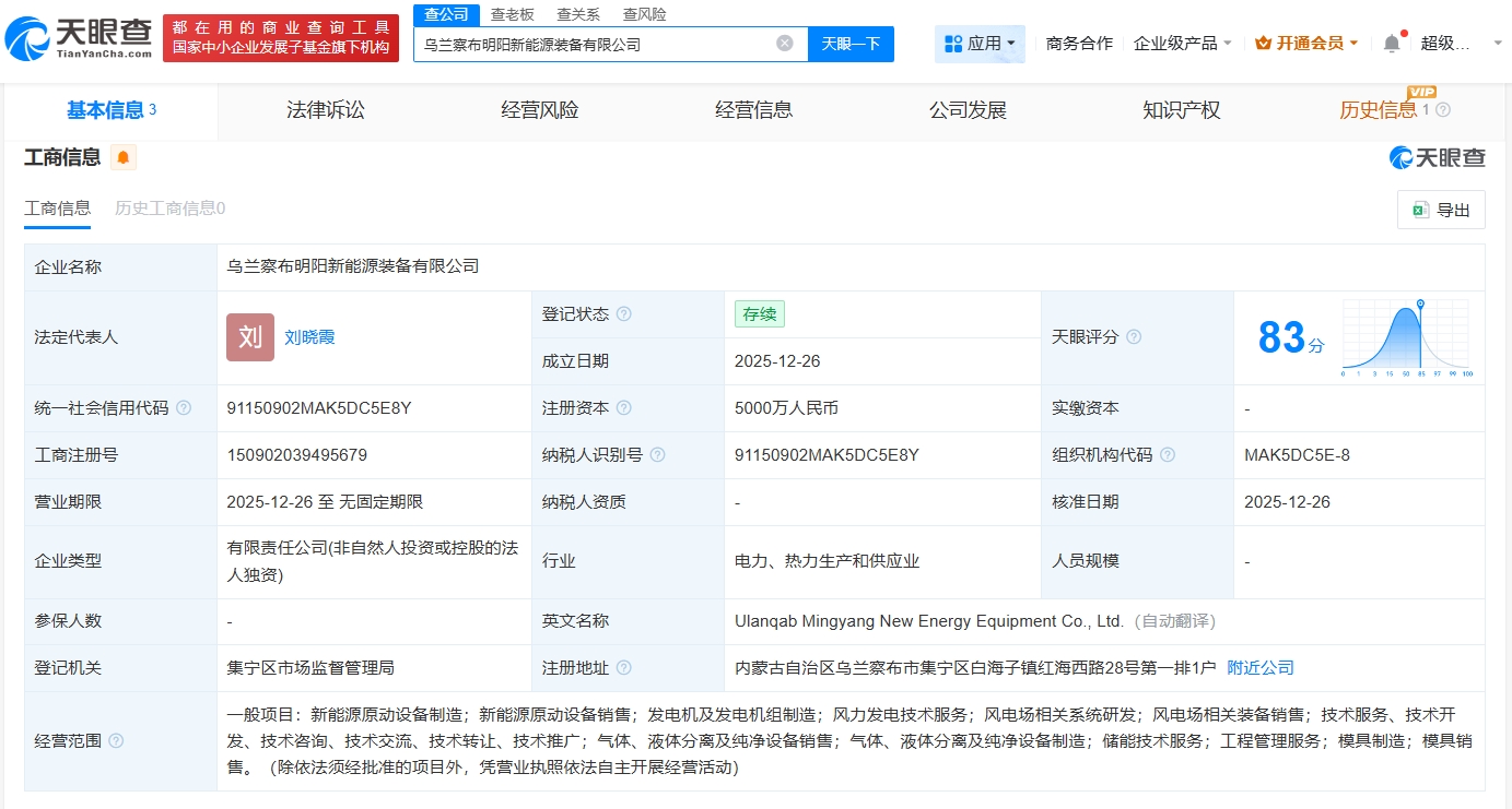 明阳智能在乌兰察布成立新能源装备公司