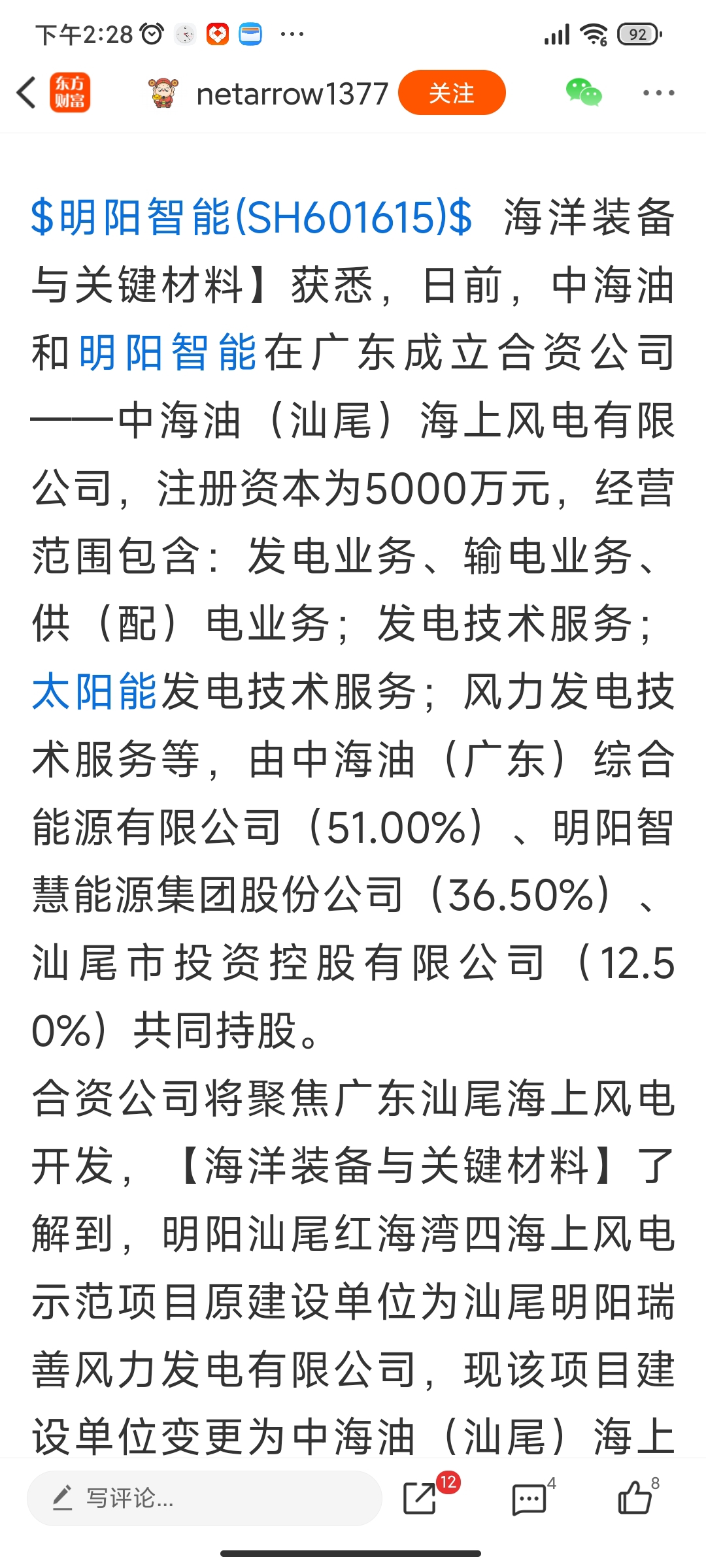 $明阳智能(SH601615)$