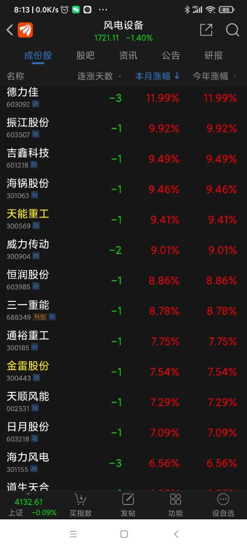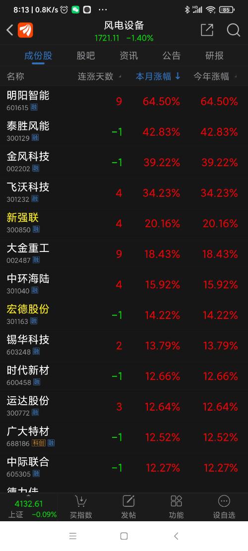 明阳智能因重大资产重组,导致三个涨停板,列风电设备板块今年元月涨幅第一名。