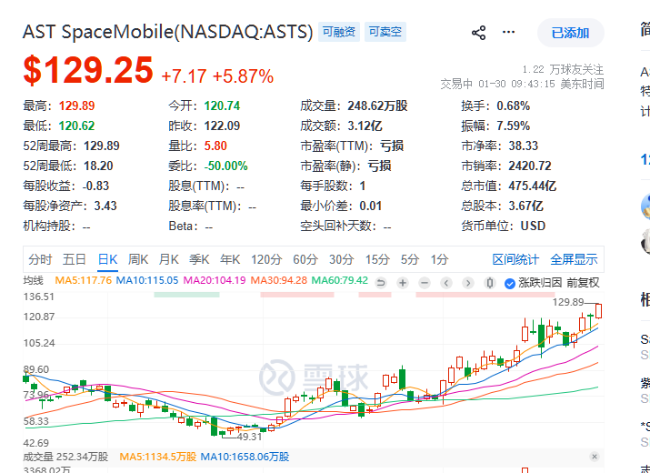 ASTS再创历史新高,2026航天绝对是第一主线