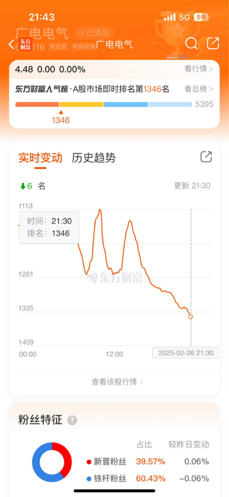 $广电电气(SH601616)$ 从人气榜上看,老铁粉关注度提高,新晋粉丝则减少。