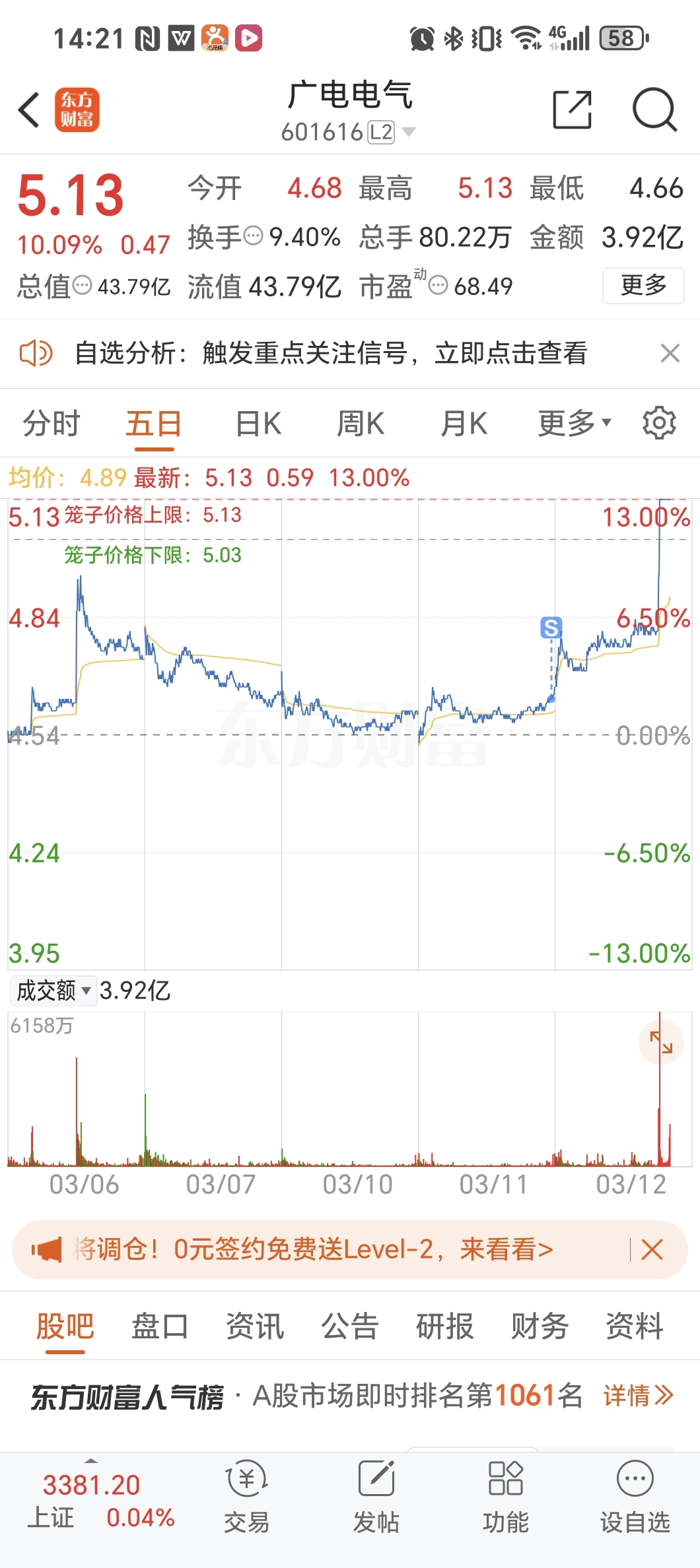 $广电电气(SH601616)$ 天才交易员申请出战!!!