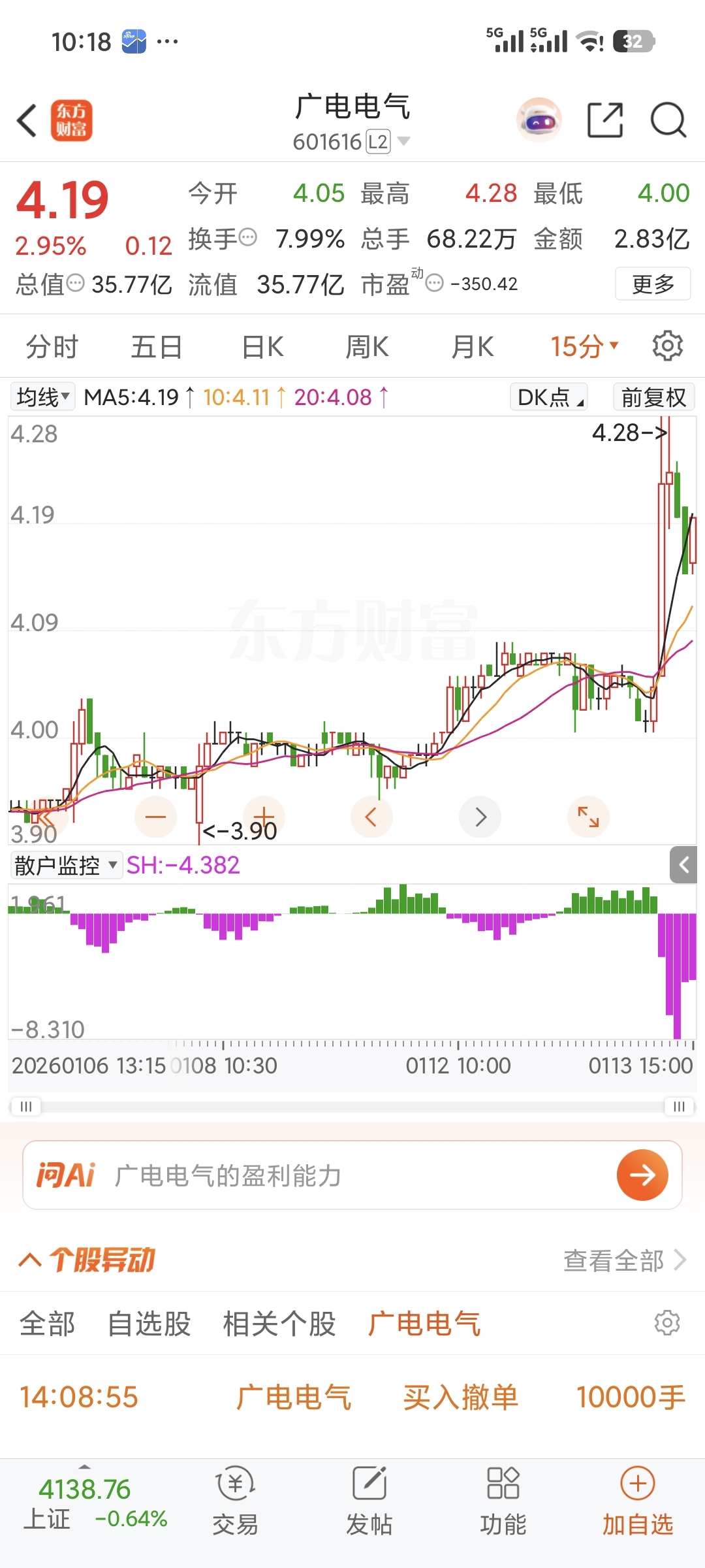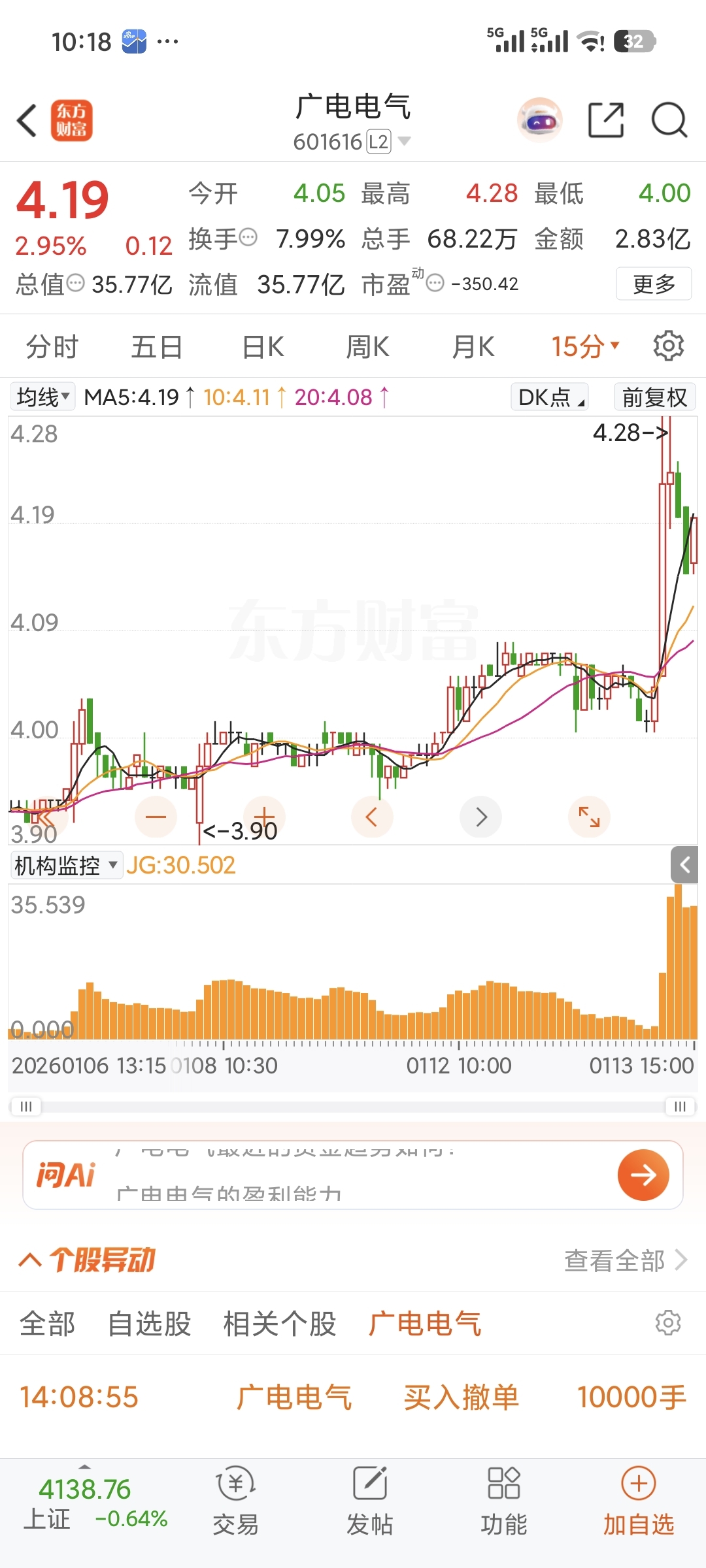 4元的电网设备只此一个。机构大幅流入,散户加速流出。看到八元