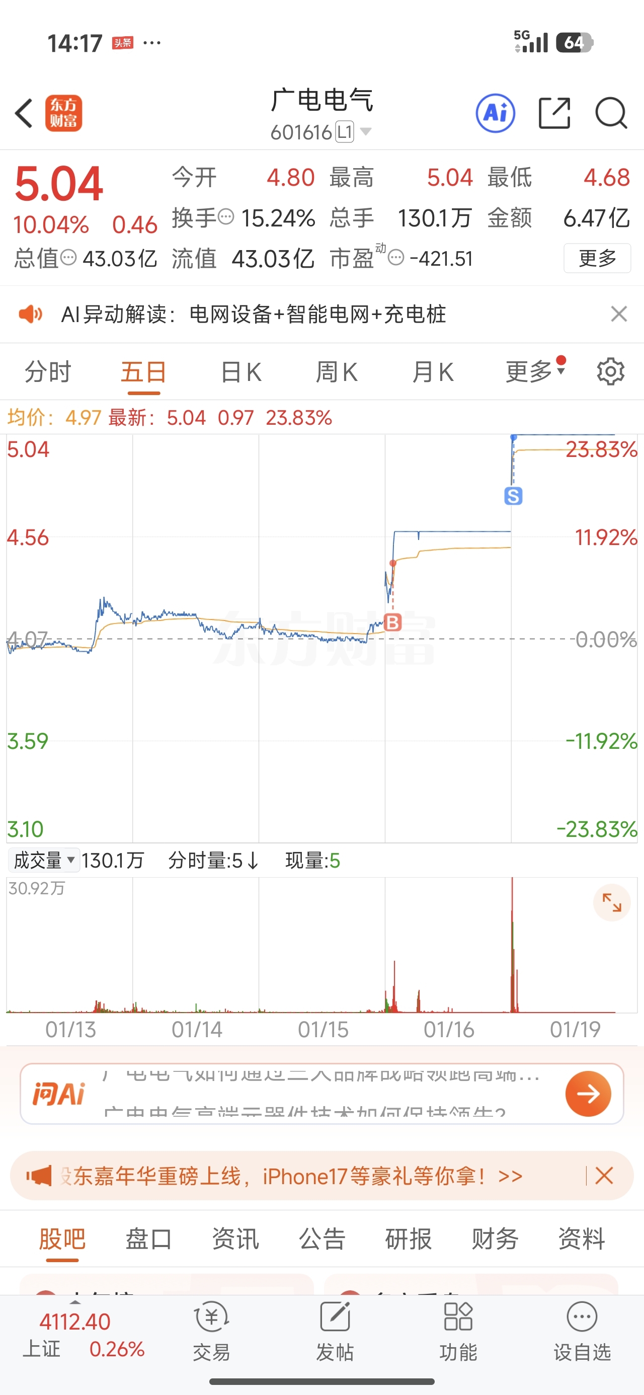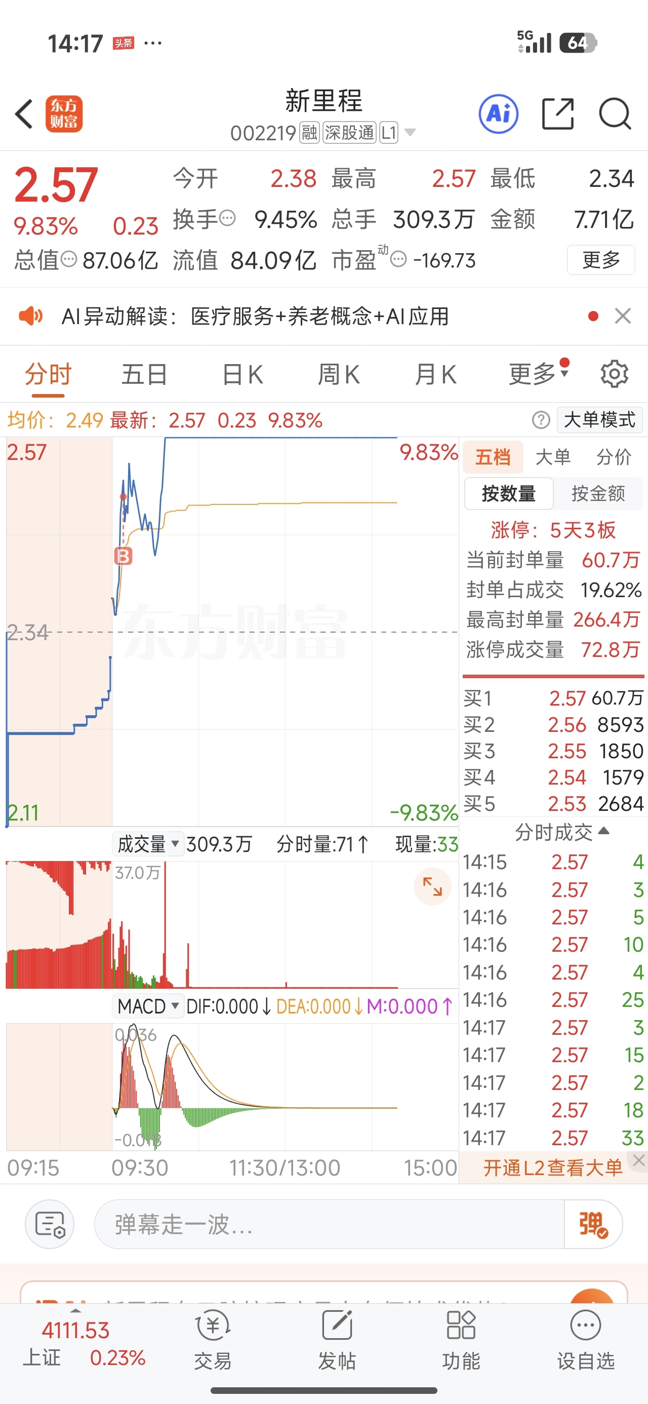 今天卖出广电电气,进了新里程,主要感觉这波电力主线龙头是汉揽,可惜昨天没有进去,