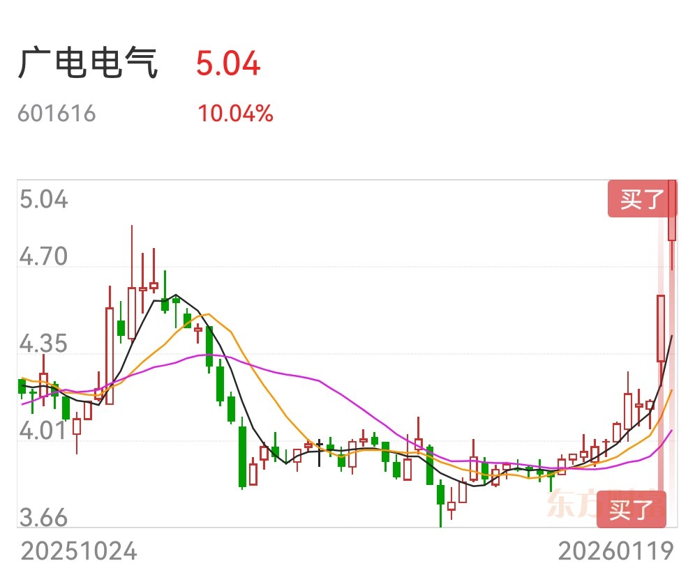 上海方军,早盘竞价买进广电电气1000万,2天2板。