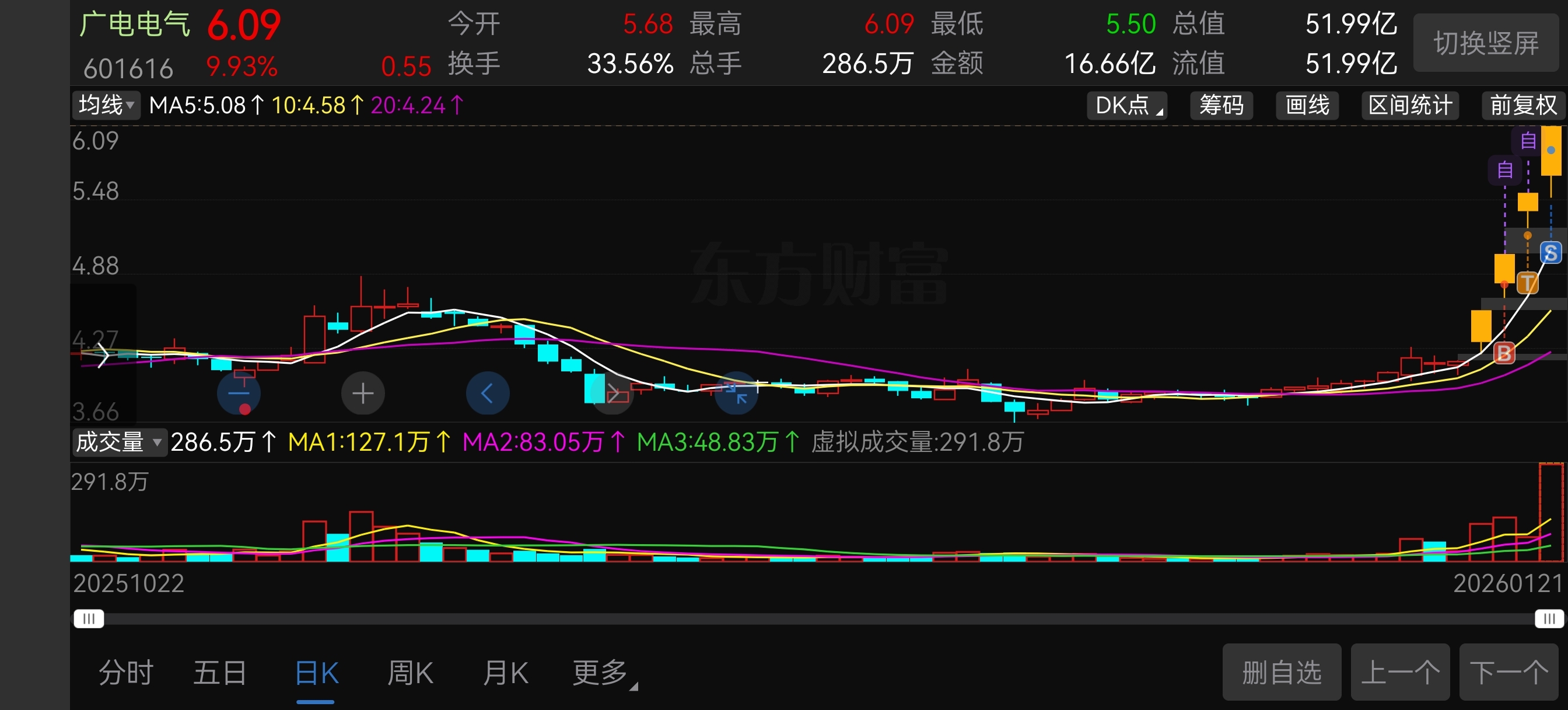 $广电电气(SH601616)$ 全部出清,今天这个板打不得,是个出货板,爆量出货板,成交量一下干到10多亿,后面的利润留给别人,鱼尾不吃了。凶多吉少。