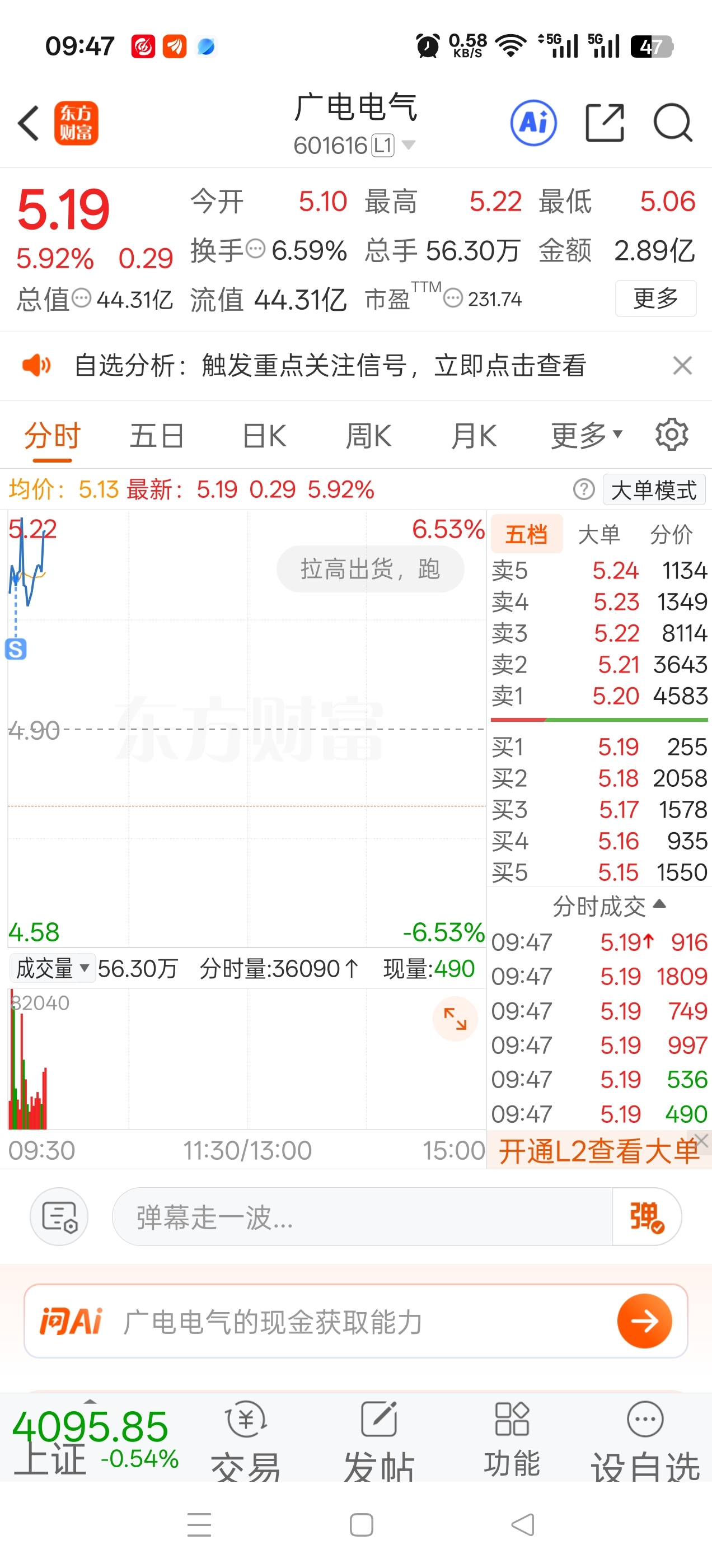 $广电电气(SH601616)$ 一卖就涨