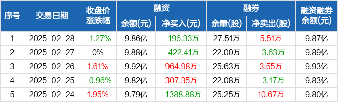 中国中冶:融资净偿还196.33万元,融资余额9.86亿元(02-28)