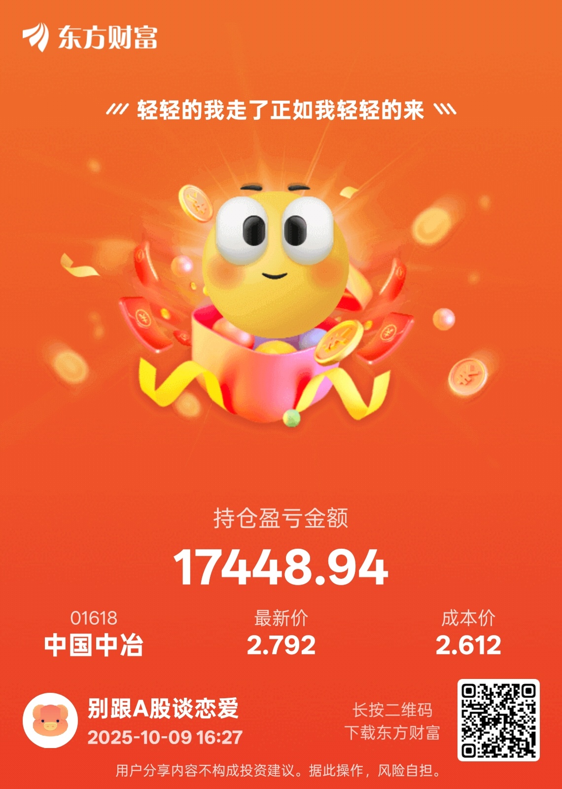 $中国中冶(SH601618)$ 低价,破净股,新疆工程,有色金属,无论哪一点都可以高看一线,不过我买的港股,因为港股真便宜啊,现在六层仓,在确定性更强的位置再加满