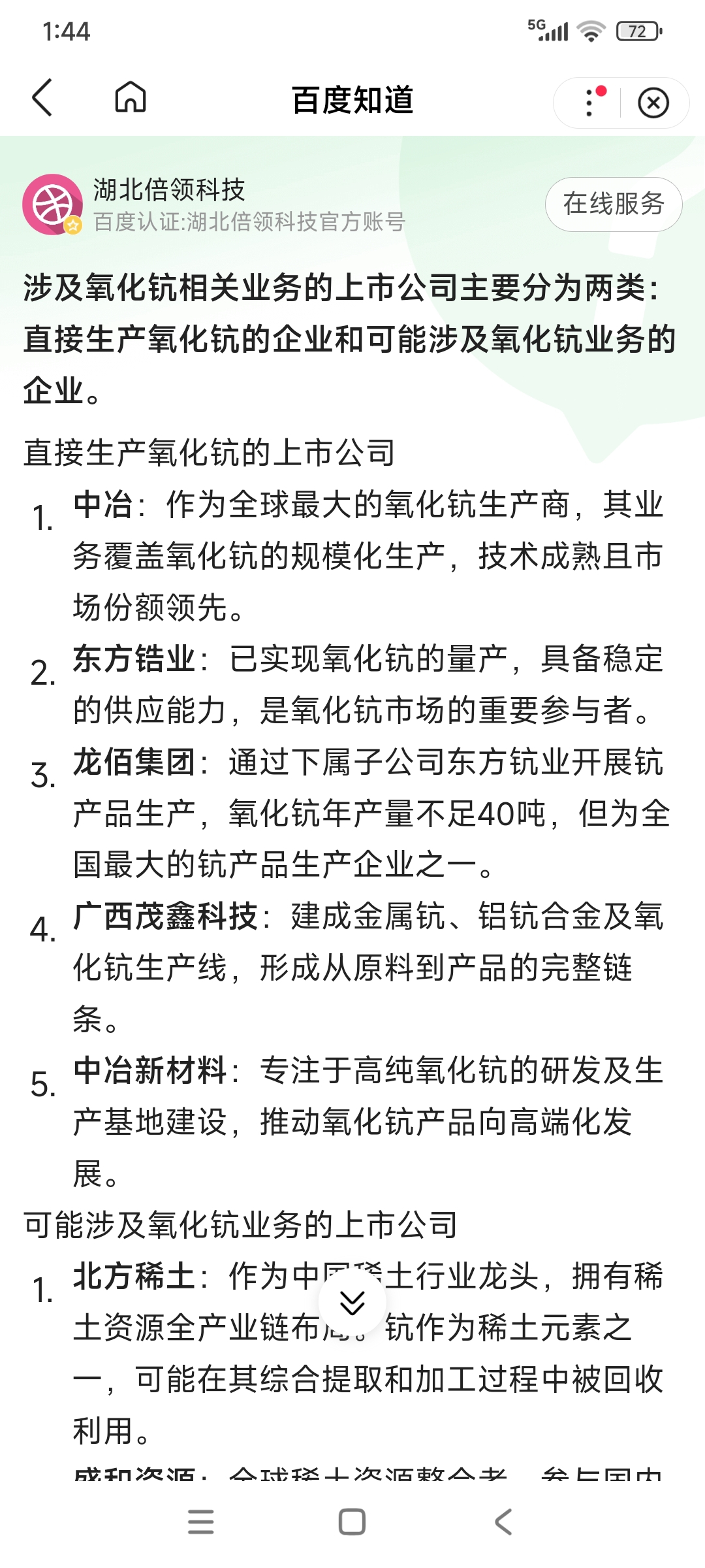 $中国中冶(SH601618)$ 稀土元素钪,中冶居然是最大的氧化钪生产企业