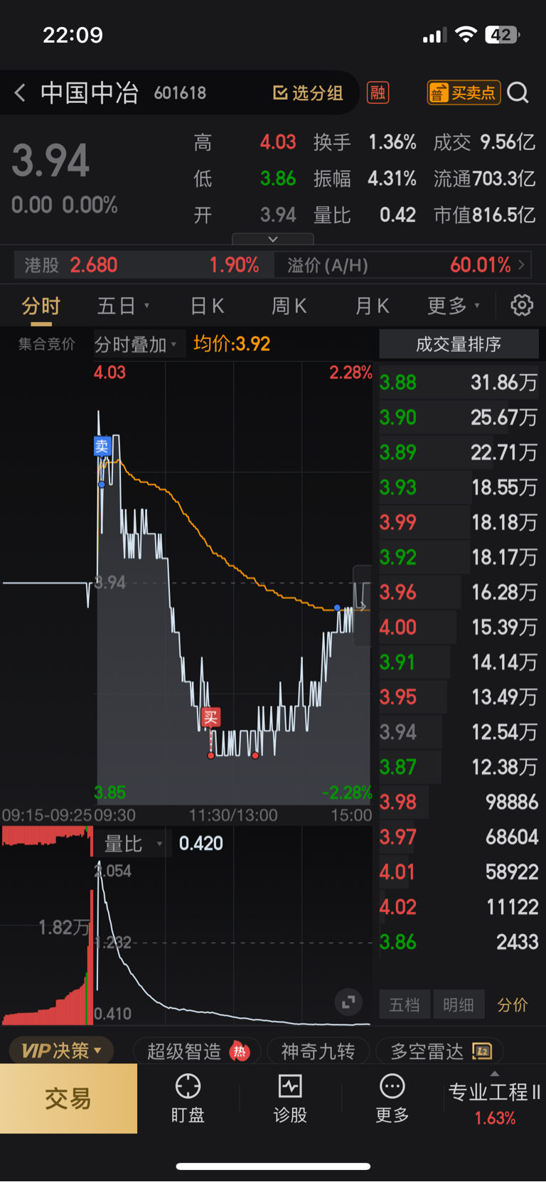 $中国中冶(SH601618)$ 这是中冶今天在各个价位的交易量,大家怎么看待明天的走势?