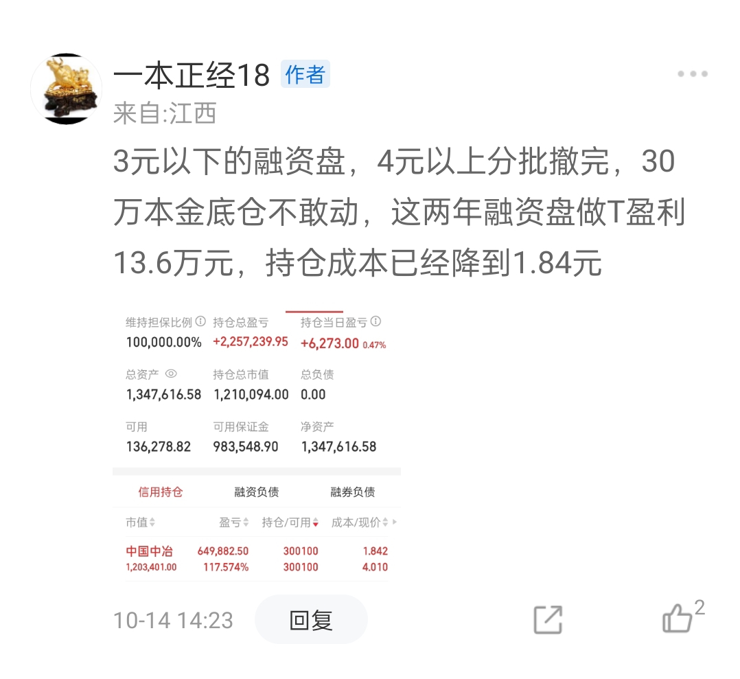 本人中冶3.65元再次满仓满融!希望3.5元以下不再有。