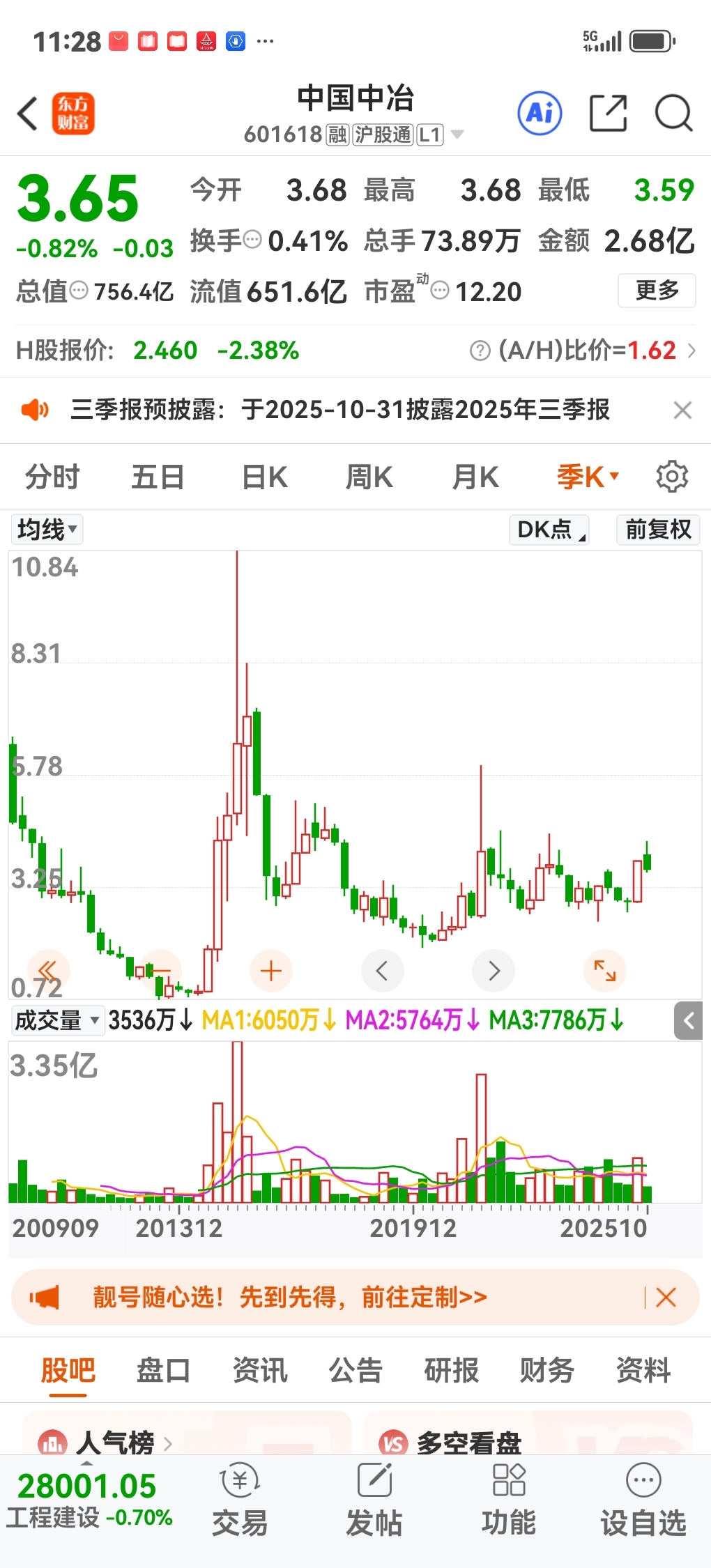 $中国中冶(SH601618)$ 三年内10.84大概率会成为历史