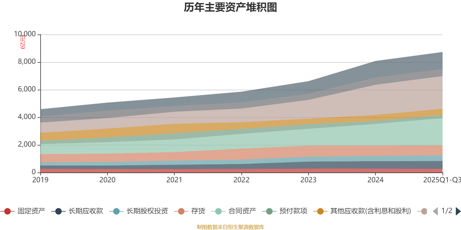 资产重大变化方面,截至2025年三季度末,公司合同资产较上年末增加26.63%,占公司总资产比重上升3.33个百分点;存货较上年末减少5.36%,占公司总资产比重下降1.16个百分点;货币资金较上年末减少1.96%,占公司总资产比重下降0.6个百分点;固定资产较上年末减少2.67%,占公司总资产比重下降0.34个百分点。