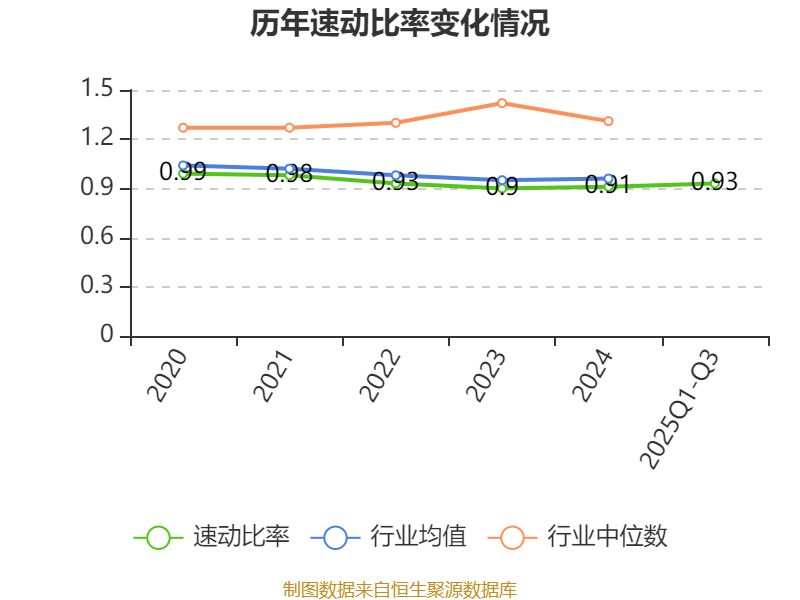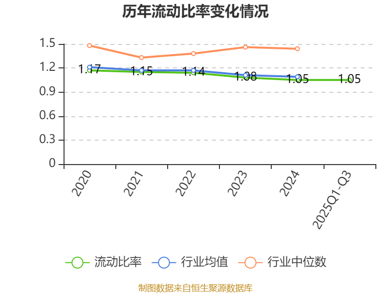 2025年前三季度,公司流动比率为1.05,速动比率为0.93。