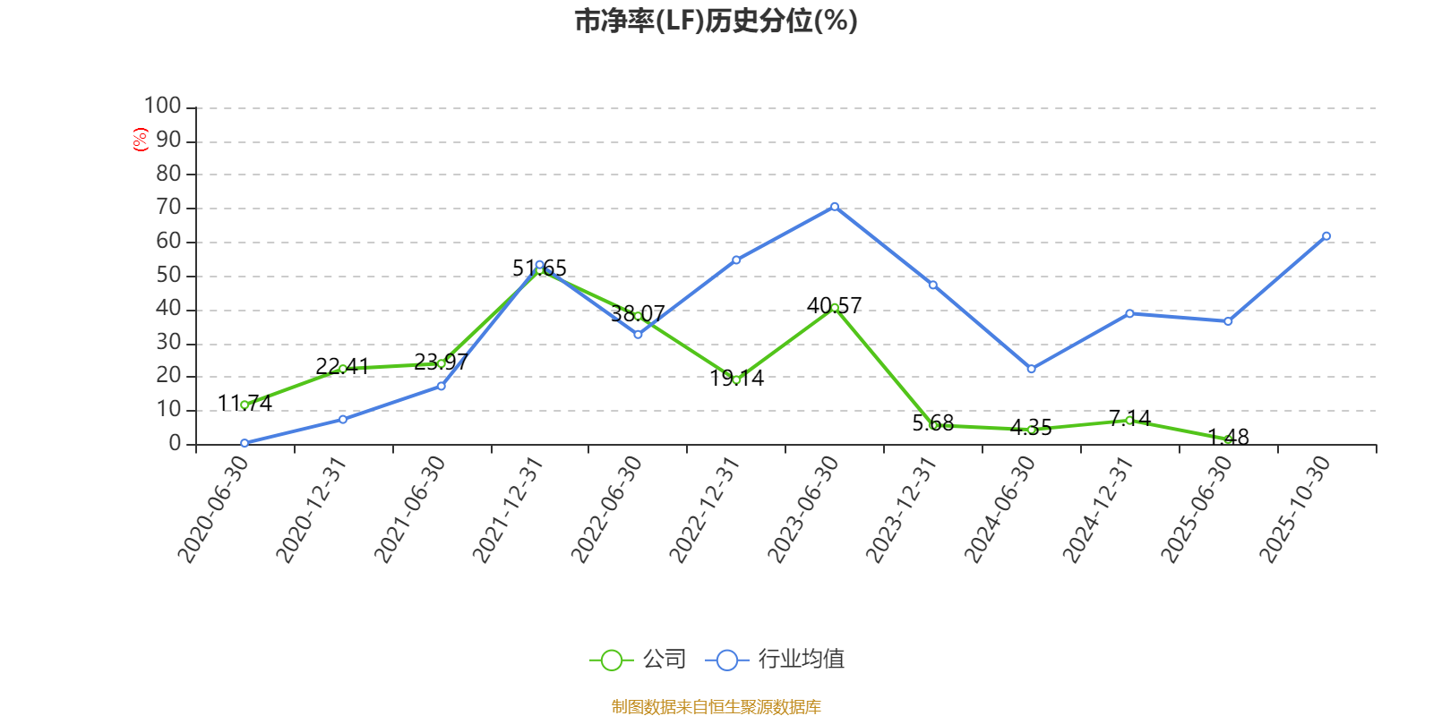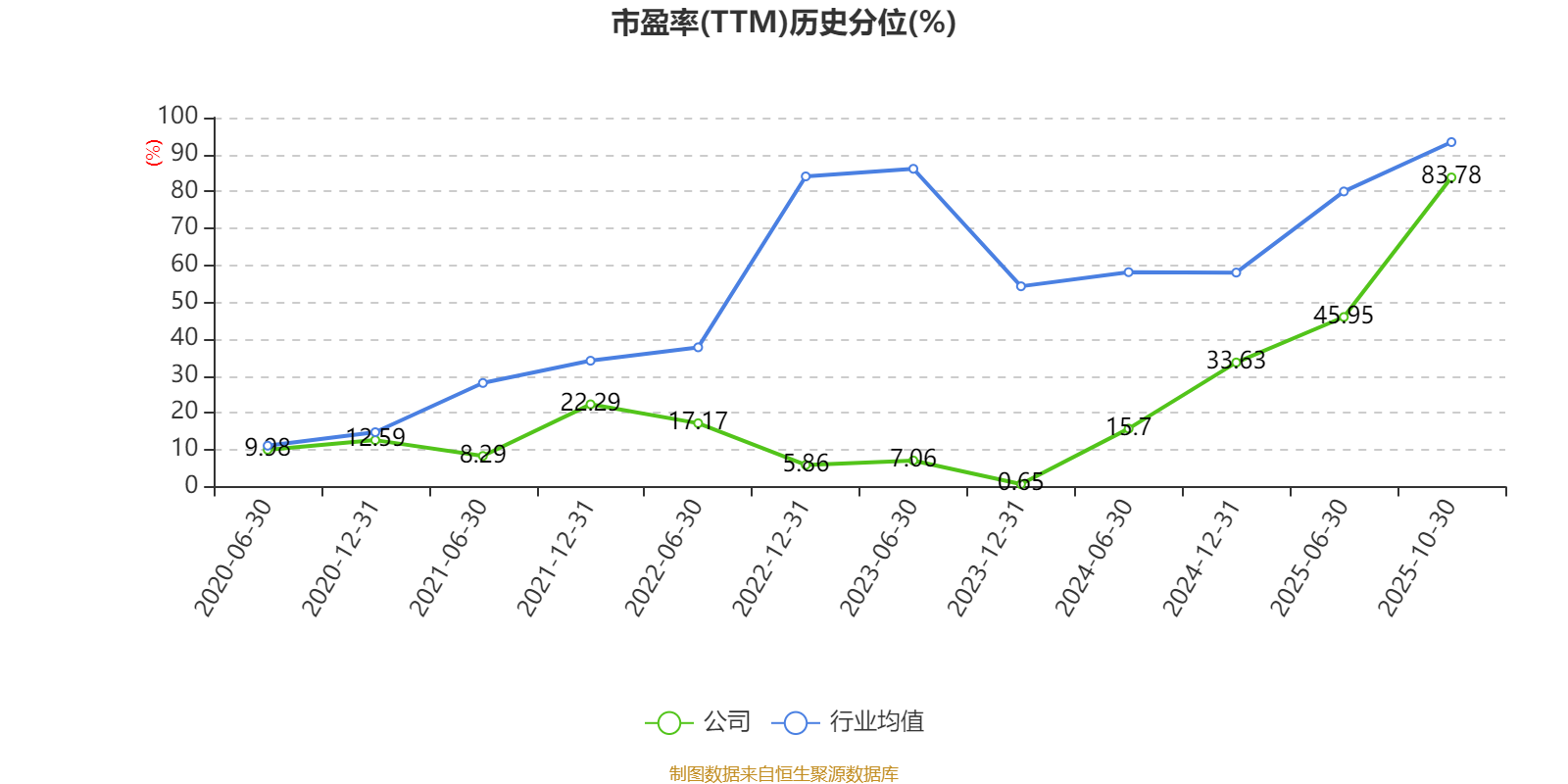 市盈率、市净率为负时,不显示当期分位数,会导致折线图中断。