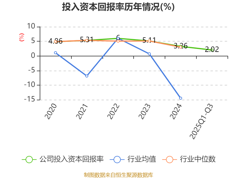 盈利能力方面, 2025年前三季度公司加权平均净资产收益率为2.56%,同比下降2.43个百分点。公司2025年前三季度投入资本回报率为2.02%,较上年同期下降1.09个百分点。