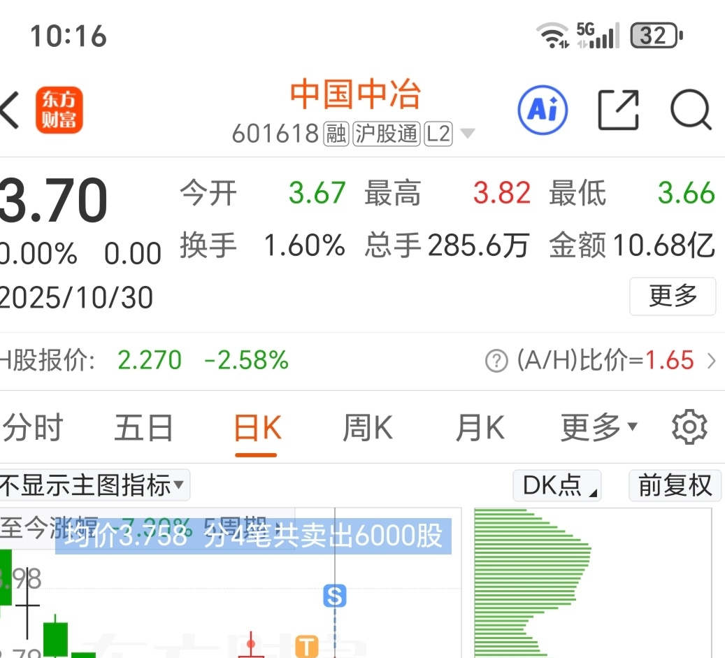 4块钱的时候建仓,拿了几天看趋势要往下,不得已3.75割掉一半,现在看看竟然还是