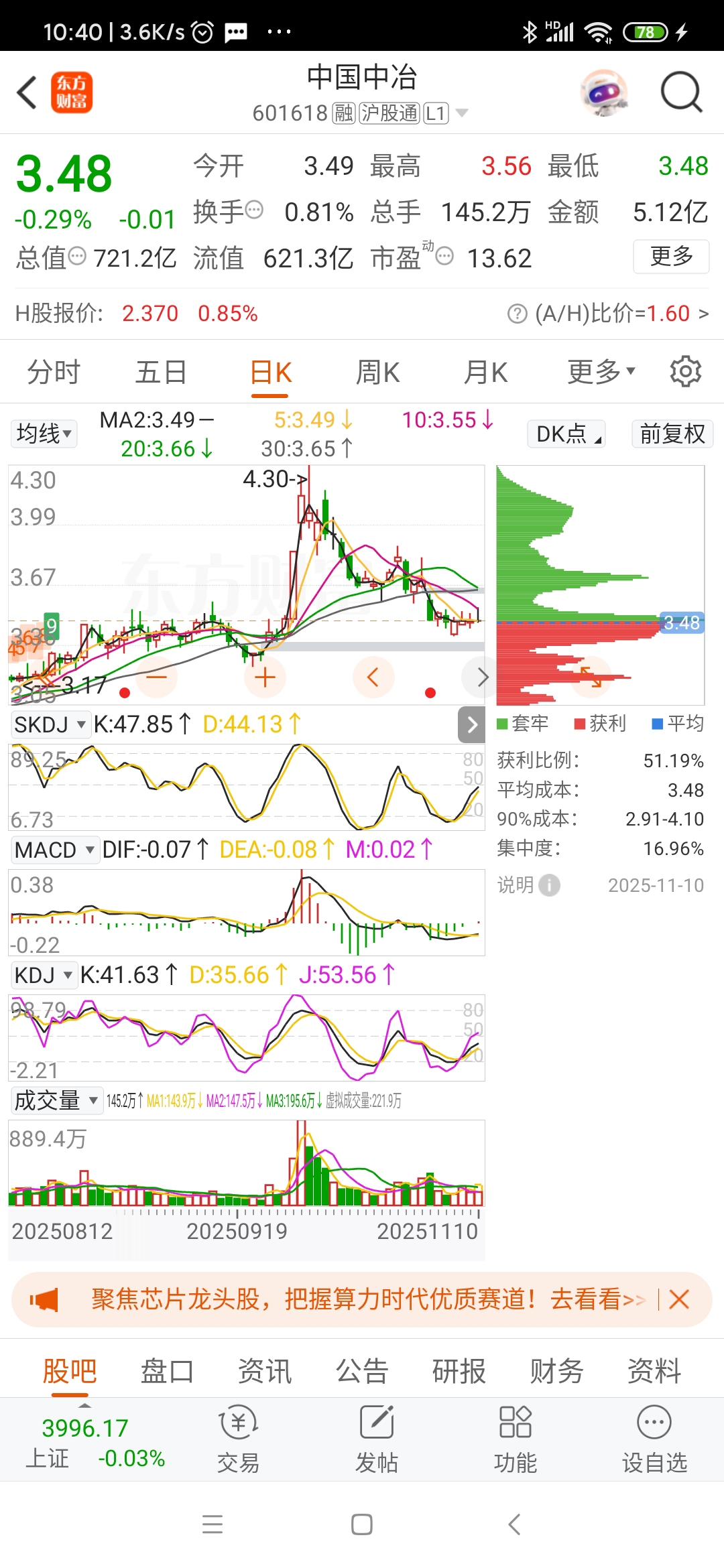 上部的筹码峰一点没动,底部的走掉一点了